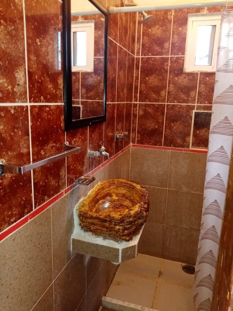 -2 edificaciones de baños. Total 8 baños compartidos totalmente equipados con inodoro, regadera, lavamanos, espejos, toallero, jabonera empotrada, cerámicos hasta 2 metros, piso de cerámicos.