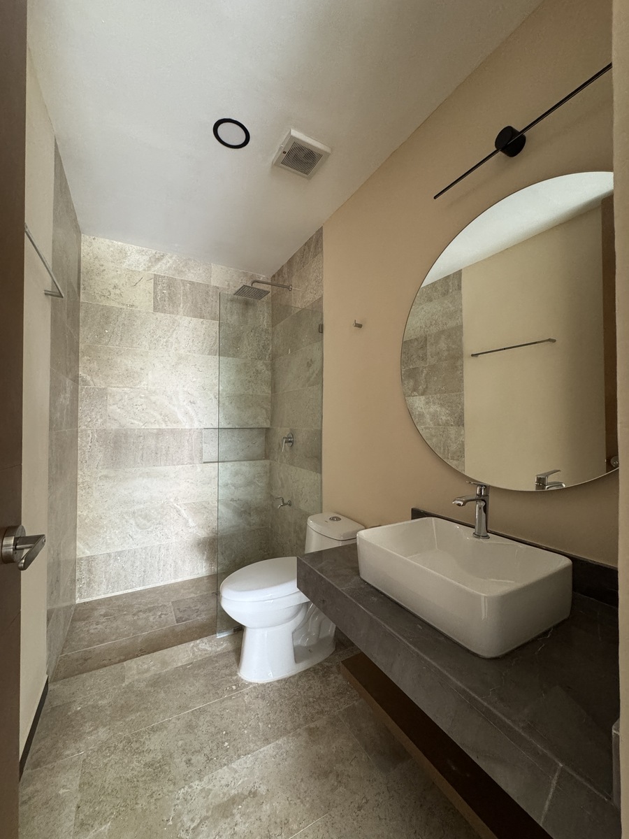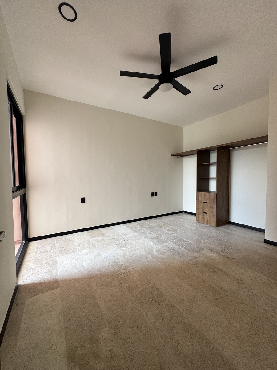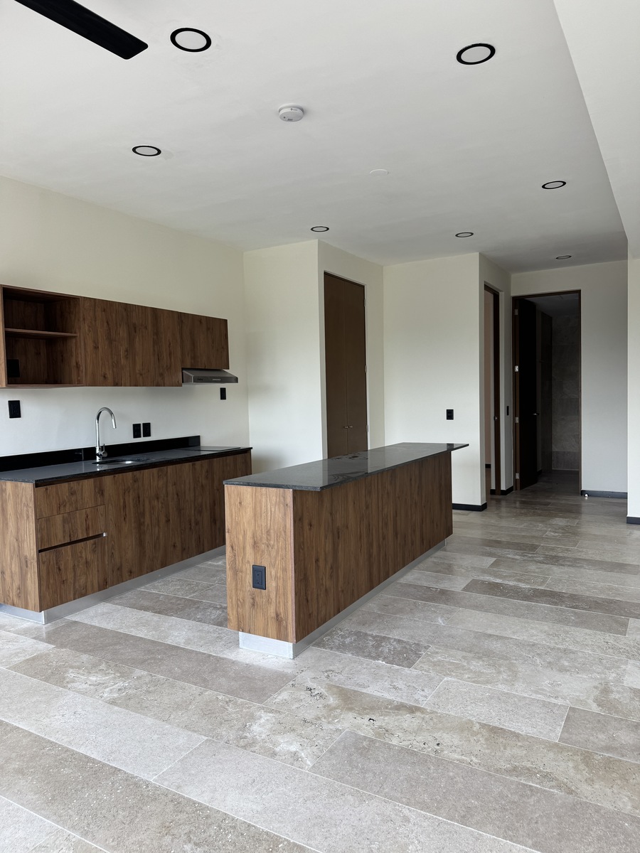 *Mesetas de granito en cocina y barra desayunadora, pisos de marmol, yeso en muros, muros divisiorios de block.