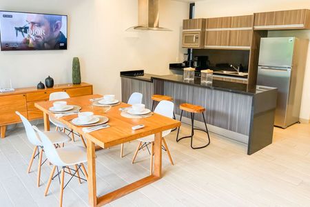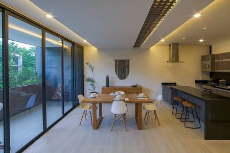 Área de loungeThis project isa groundbreaking residential development that harmonizes modern sophistication with Tulum’s natural beauty. Designed to cater to those who value sustainability, luxury, and comfort, the developement offers a unique living experience where eco-conscious architecture meets serene living.