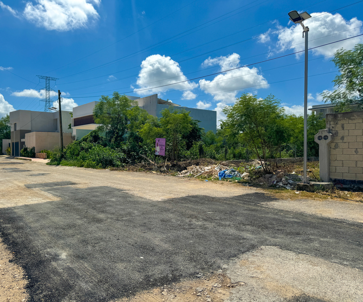 Terreno en venta en Temozón Norte, Mérida, ubicado en zona residencial con casas habitadas y entorno tranquilo.