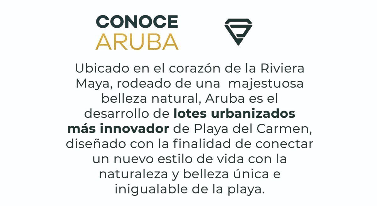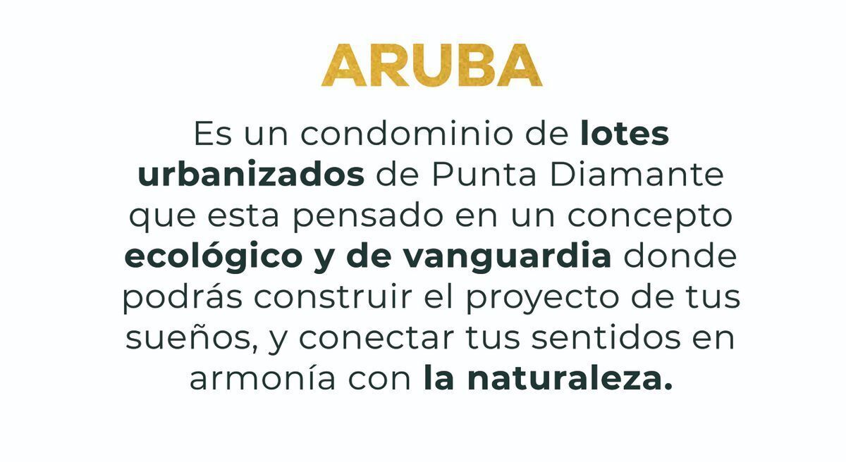 Localizada no coração da Riviera Maya, cercada por uma beleza natural majestosa, Aruba é o empreendimento mais inovador de lotes residenciais em Puerto Aventura, Playa del Carmen e arredores, projetado para conectar um novo estilo de vida à natureza e à beleza única e incomparável da praia. É um condomínio de lotes residenciais em Punta Diamante, projetado em um conceito ecológico e de vanguarda, onde você pode construir o projeto dos seus sonhos e conectar seus sentidos em harmonia com a natureza. Anexo conveniente e outras instalações sem juros... O condomínio terá 150 lotes desenvolvidos e terá comodidades e benefícios em todo o empreendimento que aumentarão o valor de sua nova propriedade. Ele é entregue em 2026.