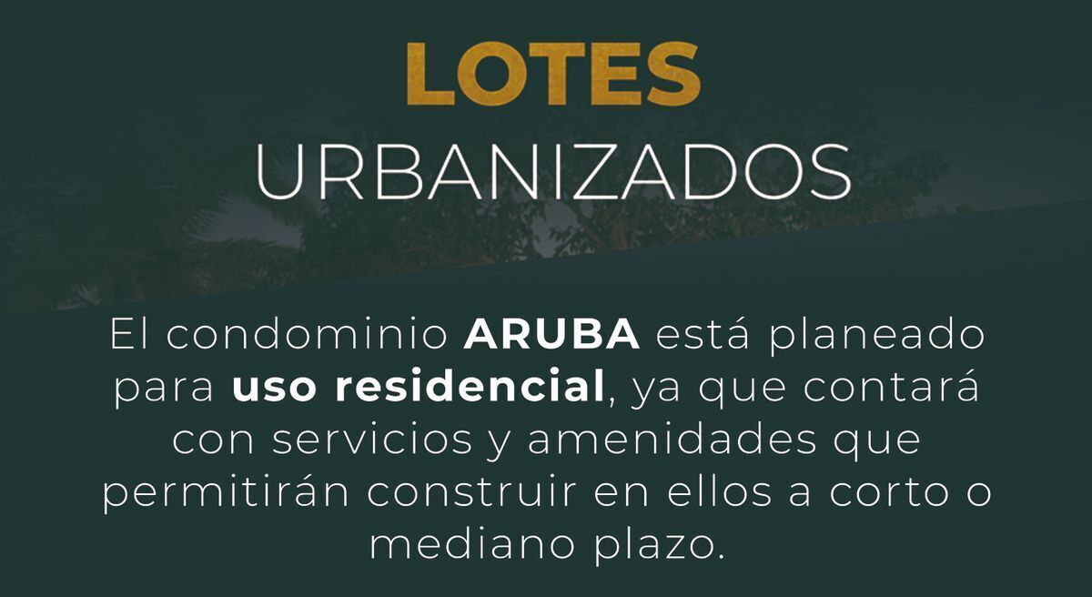 * Nota: Se esta propriedade for comprada por meio de um crédito, o preço variará de acordo com as taxas de juros aplicáveis a esse crédito.Ubicado en el corazón de la Riviera Maya, rodeado de una majestuosa belleza natural, Aruba es el desarrollo de lotes urbanizados más innovador de Puerto Aventura, Playa del Carmen y sus alrededores, diseñado con la finalidad de conectar un nuevo estilo de vida con la naturaleza y belleza única e inigualable de la playa. Es un condominio de lotes urbanizados de Punta Diamante que esta pensado en un concepto ecológico y de vanguardia donde podrás construir el proyecto de tus sueños, y conectar tus sentidos en armonía con la naturaleza. Cómodo enganche y resto facilidades sin intereses... El condominio tendrá 150 lotes urbanizados y contará con amenidades y beneficios en todo el desarrollo que incrementarán el valor de tu nueva propiedad. Se entrega en 2026.