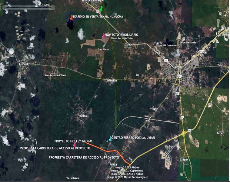 Este terreno é ideal para investidores, pois além de suas amplas dimensões, está cercado por projetos imobiliários e industriais. Alguns desses são: Halley Global, parque industrial de mil hectares; conexão ferroviária do Trem Maia de Poxilá a Puerto Progreso; e a privada residencial "Kumay"; além de comércios locais e nacionais.
