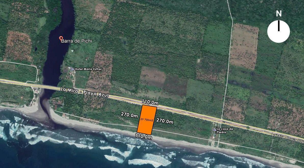 Excelente oportunidad de inversión en un terreno de 29,700 m², con huerta de plantación de palma de coco, ubicado en la Barra de Pichy, en la localidad de Playa Azul, municipio de Lázaro Cárdenas, Michoacán.
