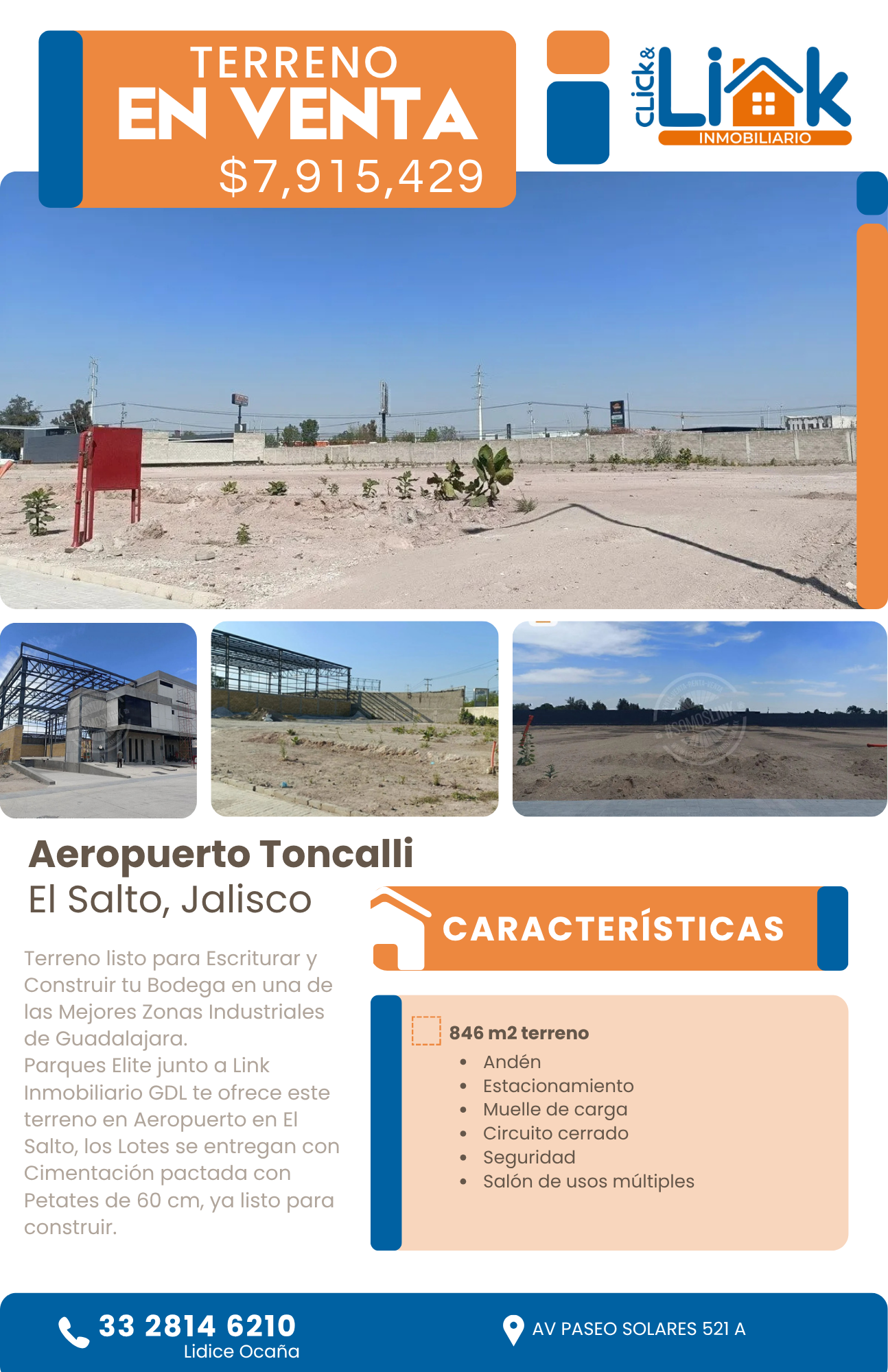Parques Elite ao lado da Link Imobiliário GDL oferece este terreno no Aeroporto em El Salto, os lotes são entregues com fundação acordada com Petates de 60 cm, já prontos para construir.