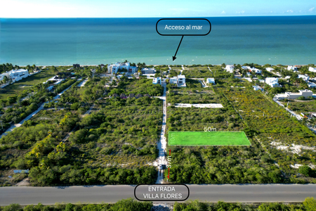 Terreno à venda na bela praia de San Benito, Yucatán, localizado na segunda fila, a poucos passos do mar. Este lote tem 10 metros de frente por 50 metros de fundo, perfeito para construir a casa dos seus sonhos ou um investimento de alta rentabilidade.