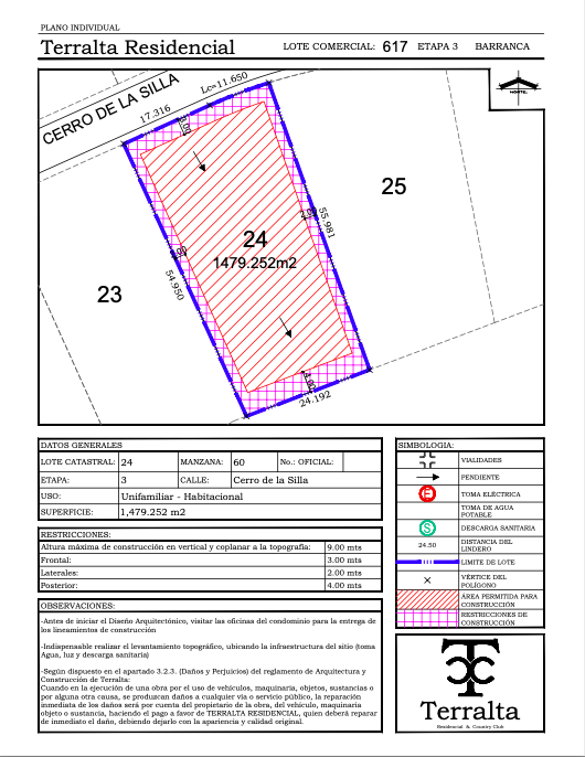 Lote Residencial en Terralta Country Club, la zona más exclusiva y de mayor crecimiento de la ciudad. Terreno descendente colindante con el hoyo 6 del campo de golf. Sin lotes que bloqueen vista y en la zona más popular del fraccionamiento. Especial para construir casa con balcones, ventanales y rooftop para disfrutar del aire fresco y las noches estrelladas.