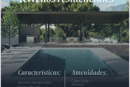 *Disponibilidade e preço sujeitos a alteração sem aviso prévio.Terreno residencial de 160 m2 en venta en exclusivo desarrollo dentro de la nueva zona de Santiago con espectaculares vistas hacia la Sierra del Cañon del Huajuco. Fraccionamiento conformado por 3 privadas que cuentan con amenidades como caseta de acceso con seguridad 24/7 y circuito cerrado, casa club, alberca, gimnasio, área de co-work, bosque interno y juegos infantles. Cuenta con barda perimetral.