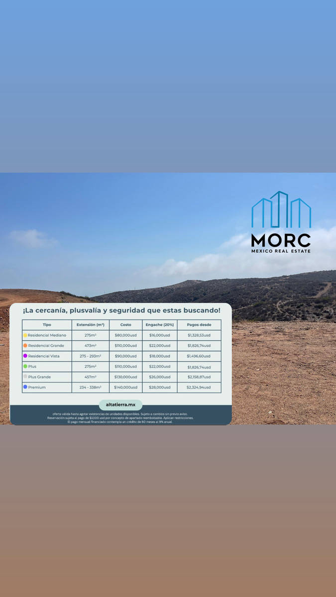 EXCLUSIVA PREVENTA DE TERRENOS RESIDENCIALES CON VISTA PANORÁMICA. ALTA TIERRA, ENSENADA,B.C.