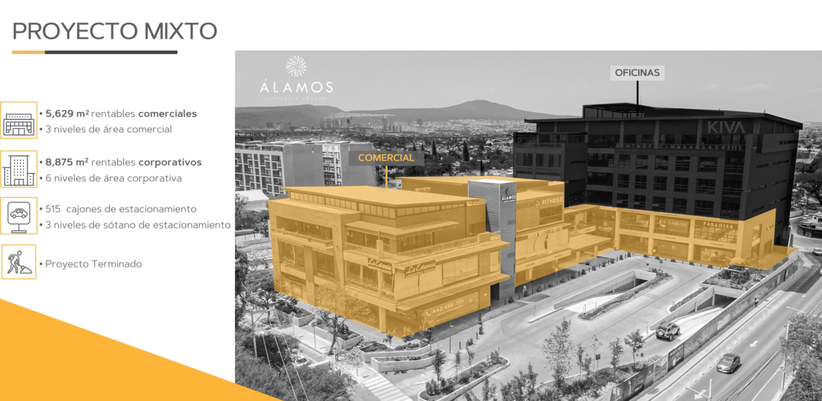 5,569 M2 de áreas comerciales y 8,875 M2 de áreas corporativas.
