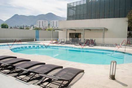 Departamento amueblado en Torre Aqua, en zona valle oriente. Cuenta con tres recamaras, dos baños y medio y cuarto de servicio. La cocina esta recién remodelada y es un departamento super amplio ya que son 145 metros, tienes sala comedor y balcón, dos cajones de estacionamiento.