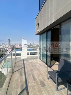 A cozinha está totalmente equipada com eletrodomésticos e bancadas de quartzo. Dispõe de 3 quartos, cada um com banheiro e closet, além de um lavabo para visitas. Inclui lavanderia e banheiro de serviço, bem como 2 vagas de estacionamento. O apartamento conta com acabamentos finos, marcenaria de alta qualidade, bancadas de mármore nos banheiros e persianas instaladas. A torre oferece uma ampla variedade de espaços comerciais e conta com a exclusividade de um apartamento por andar. Atualmente alugado, excelente oportunidade para investidores. Id Gvia: 118892Ofrezco hermoso departamento ubicado en Centrito Valle en Torre Meridian. Cuenta con amplia sala y comedor con grandes ventanales que ofrecen espectaculares vistas a la Sierra Madre, además de un family room y terraza privada.