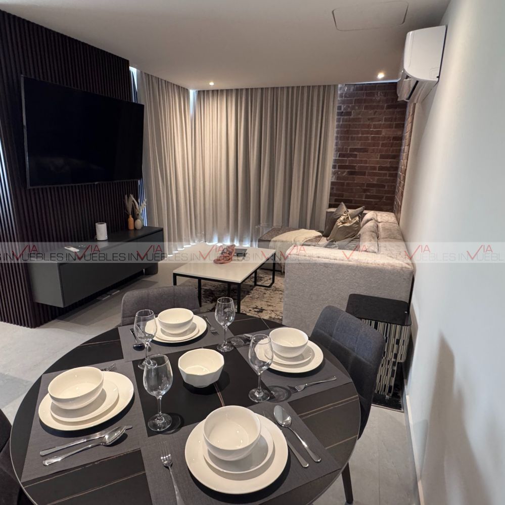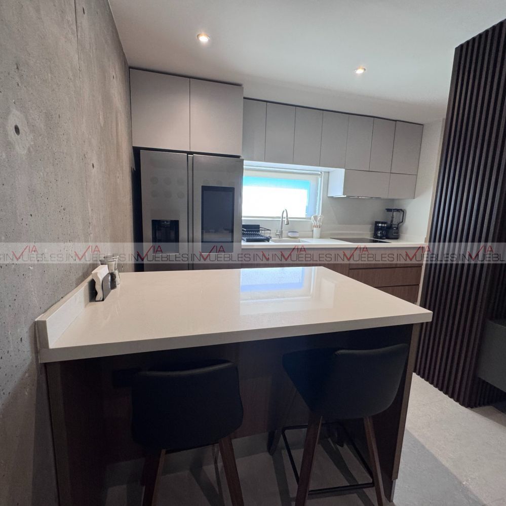 Hermoso departamento ubicado en la exclusiva Torre MUN en último piso (29) con hermosas vistas a la Sierra Madre. Cuenta con 2 recamaras cada una con su baño completo y amplio closet, así como sala, comedor, área de lavado, cocina totalmente equipada, listo para estrenar.