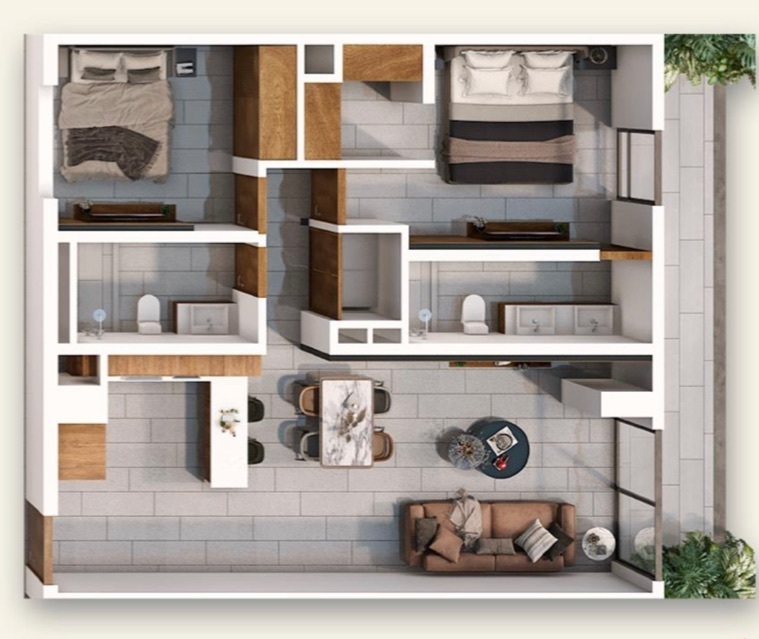 **Disponibilidade e preços sujeitos a alterações sem aviso prévio.**El Proyecto consta de dos bloques arquitectónicos, uno para el área comercial y de oficinas y el otro para departamentos residenciales, en el primer nivel se encuentra el área comercial y los siguientes de oficinas en el nivel 6 tenemos las amenidades terrace Garden, alberca, sundeck, gym, lounge bar, party venue, co-work, grill area. Del nivel 7-15 se localizan los departamentos en los cuales están disponibles 5 tipologías a elegir.