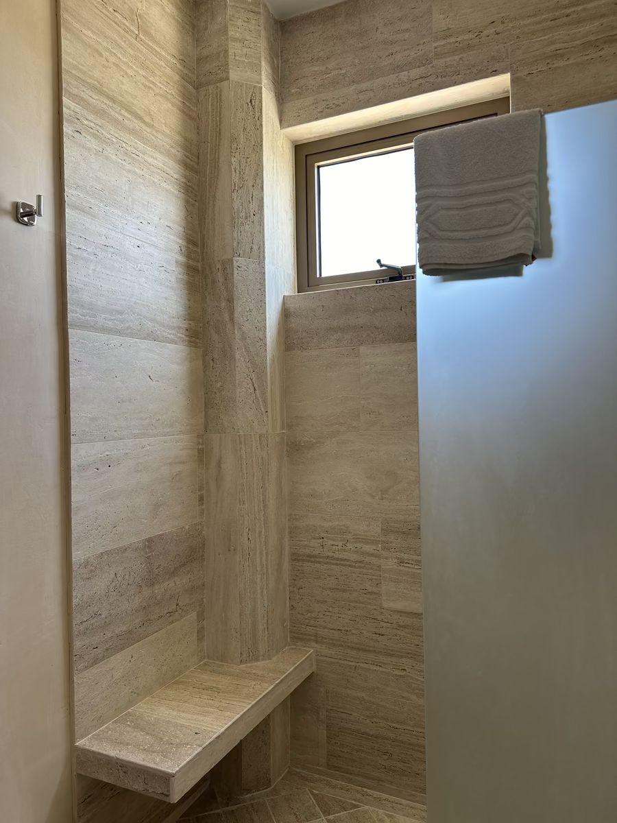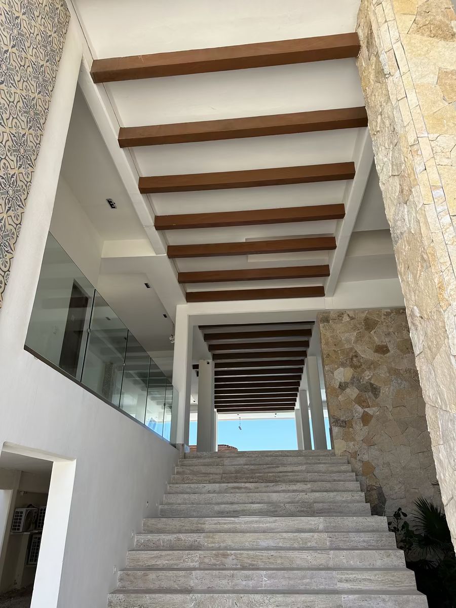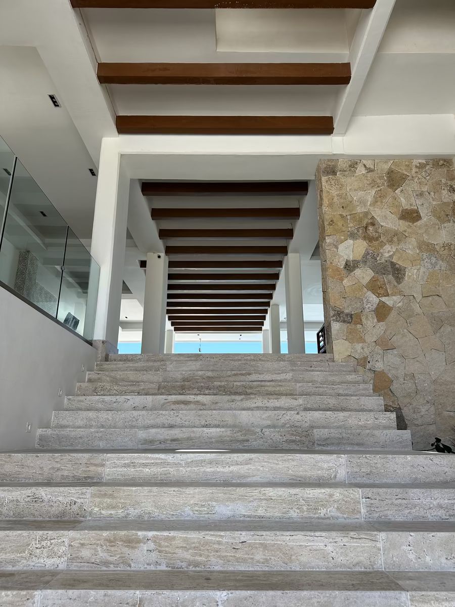 -Acabados de lujo con piso de marmol travertino formato 30 cm por largo libre.