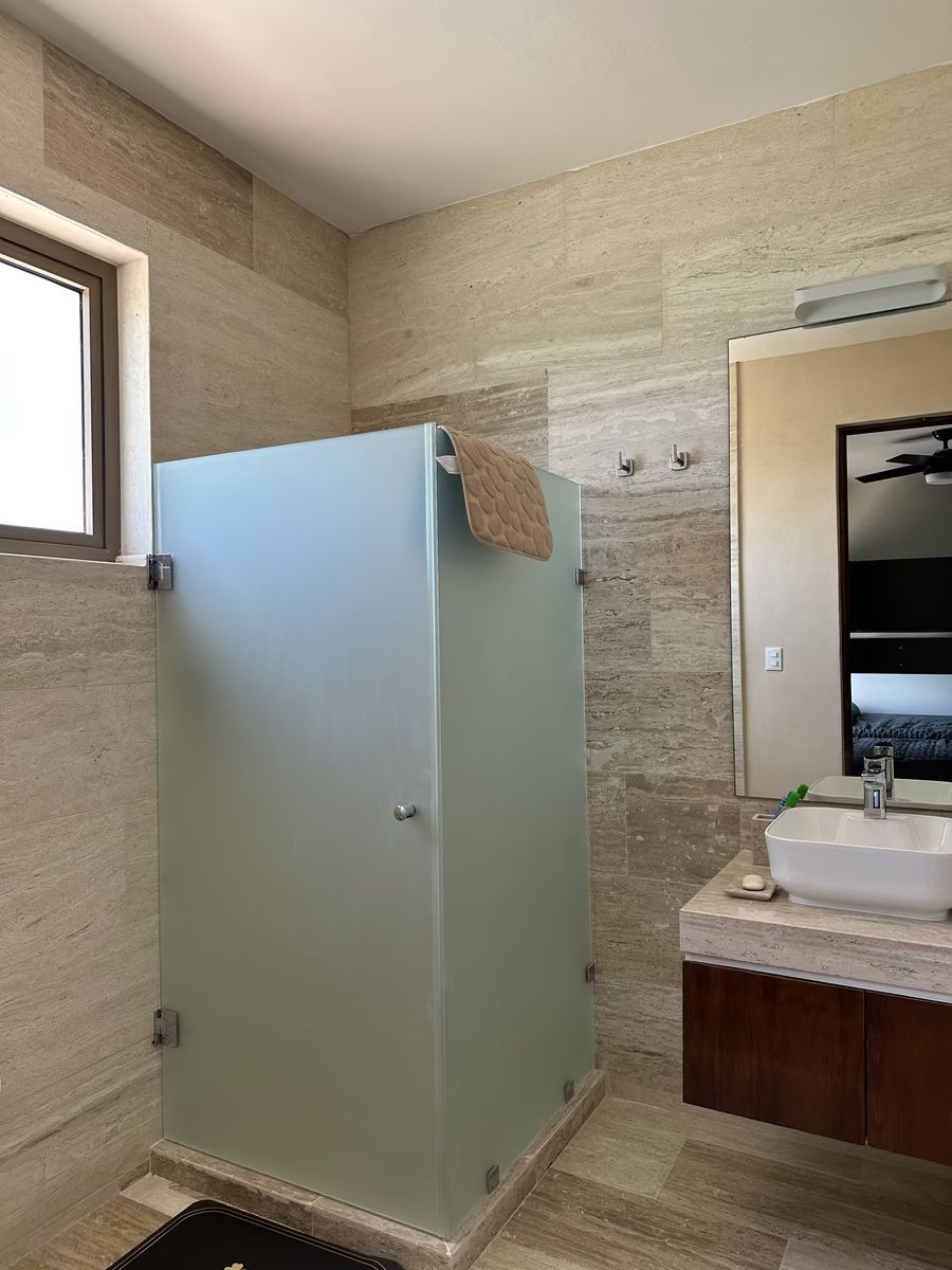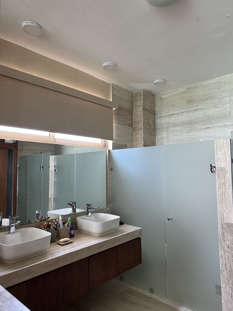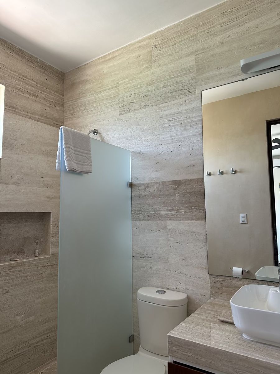-Acabados de lujo con piso de marmol travertino formato 30 cm por largo libre.