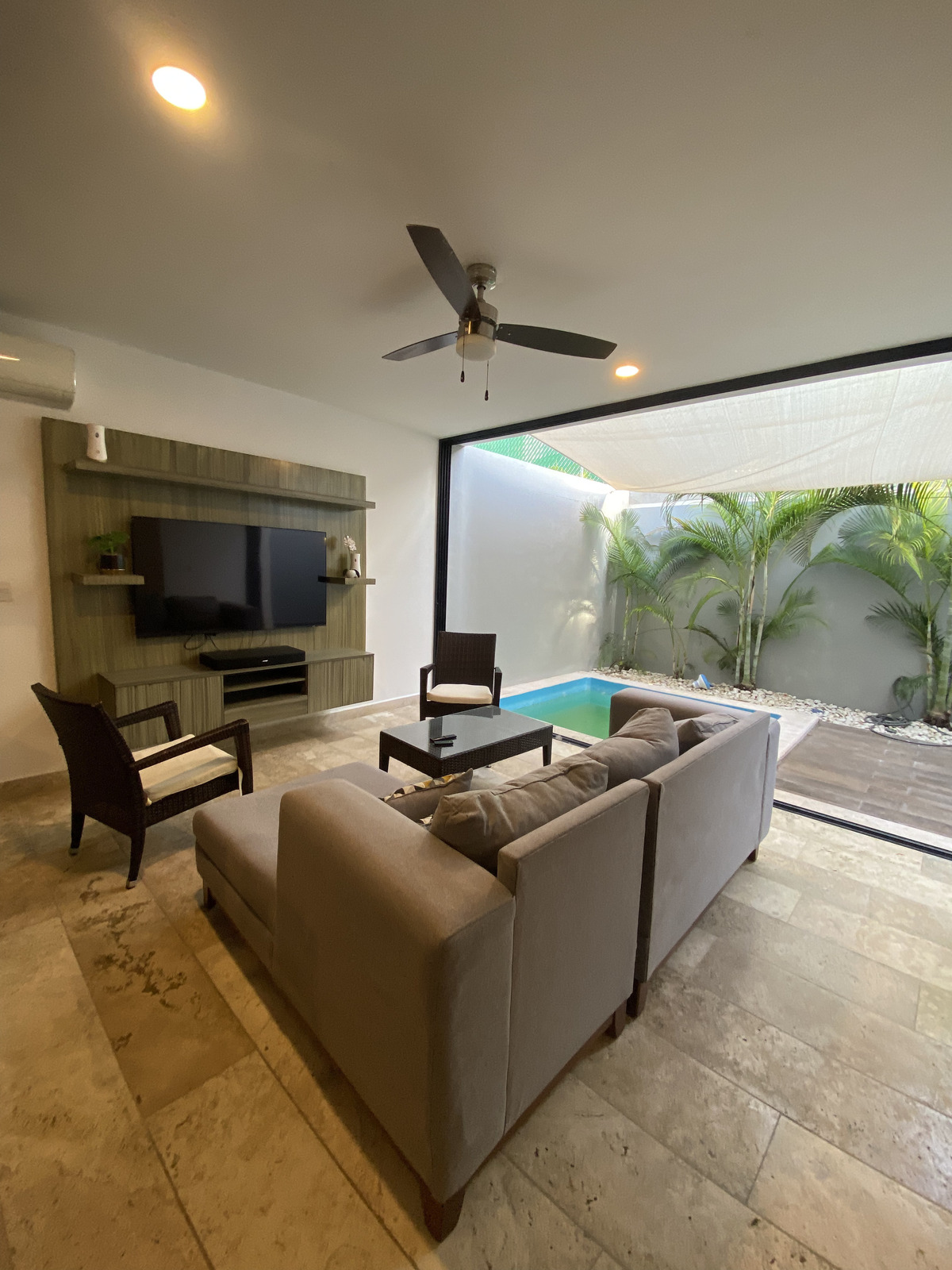 Sala y comedor con vista a la terraza