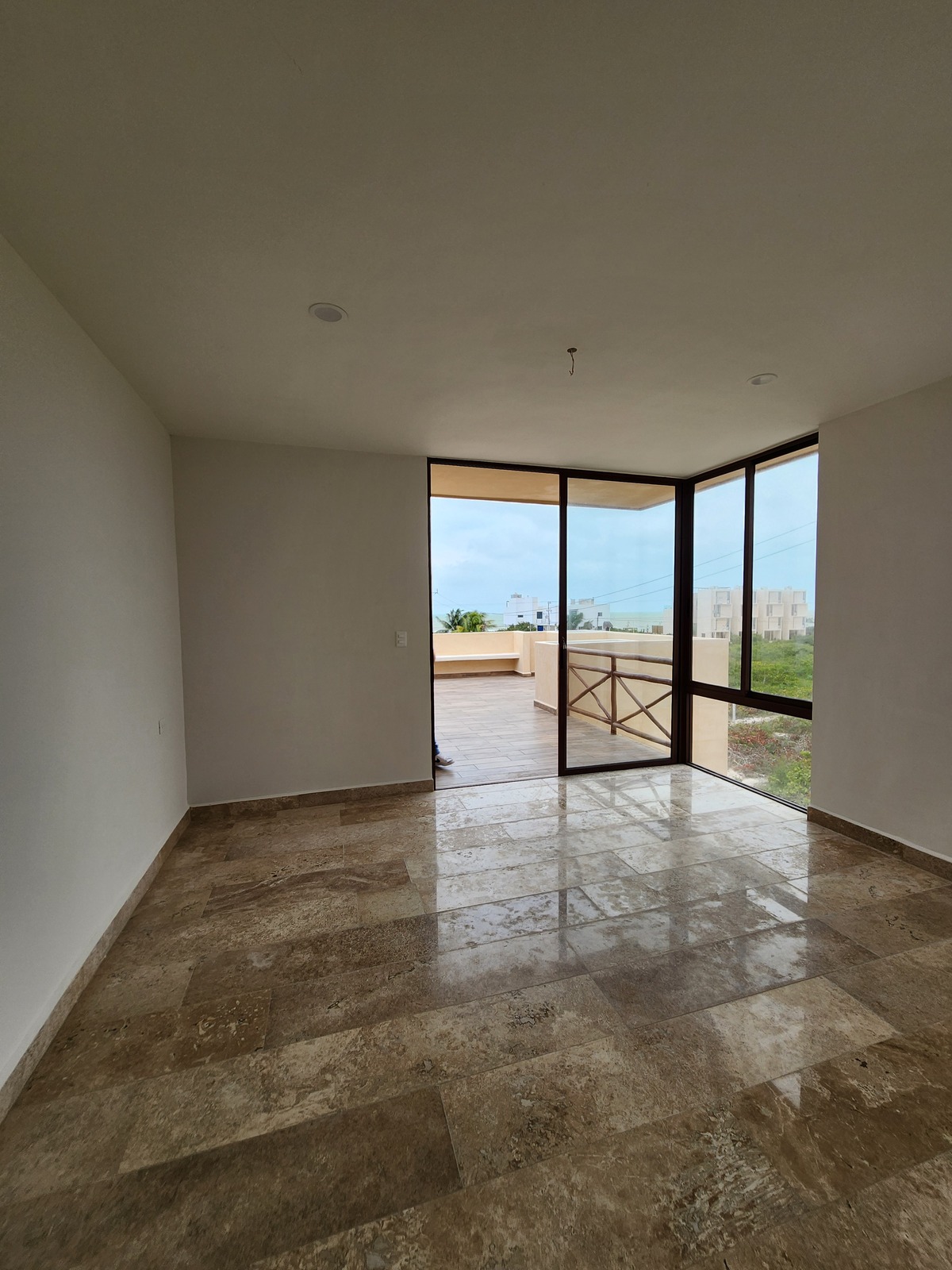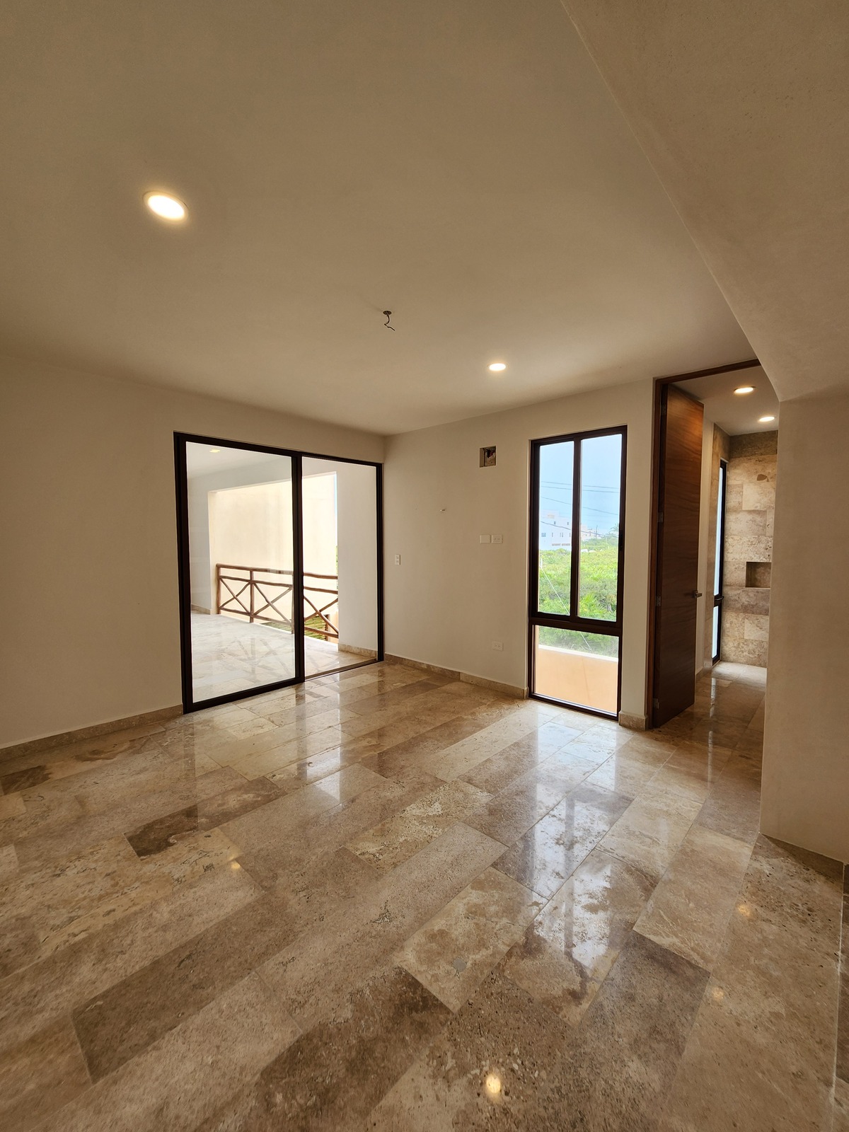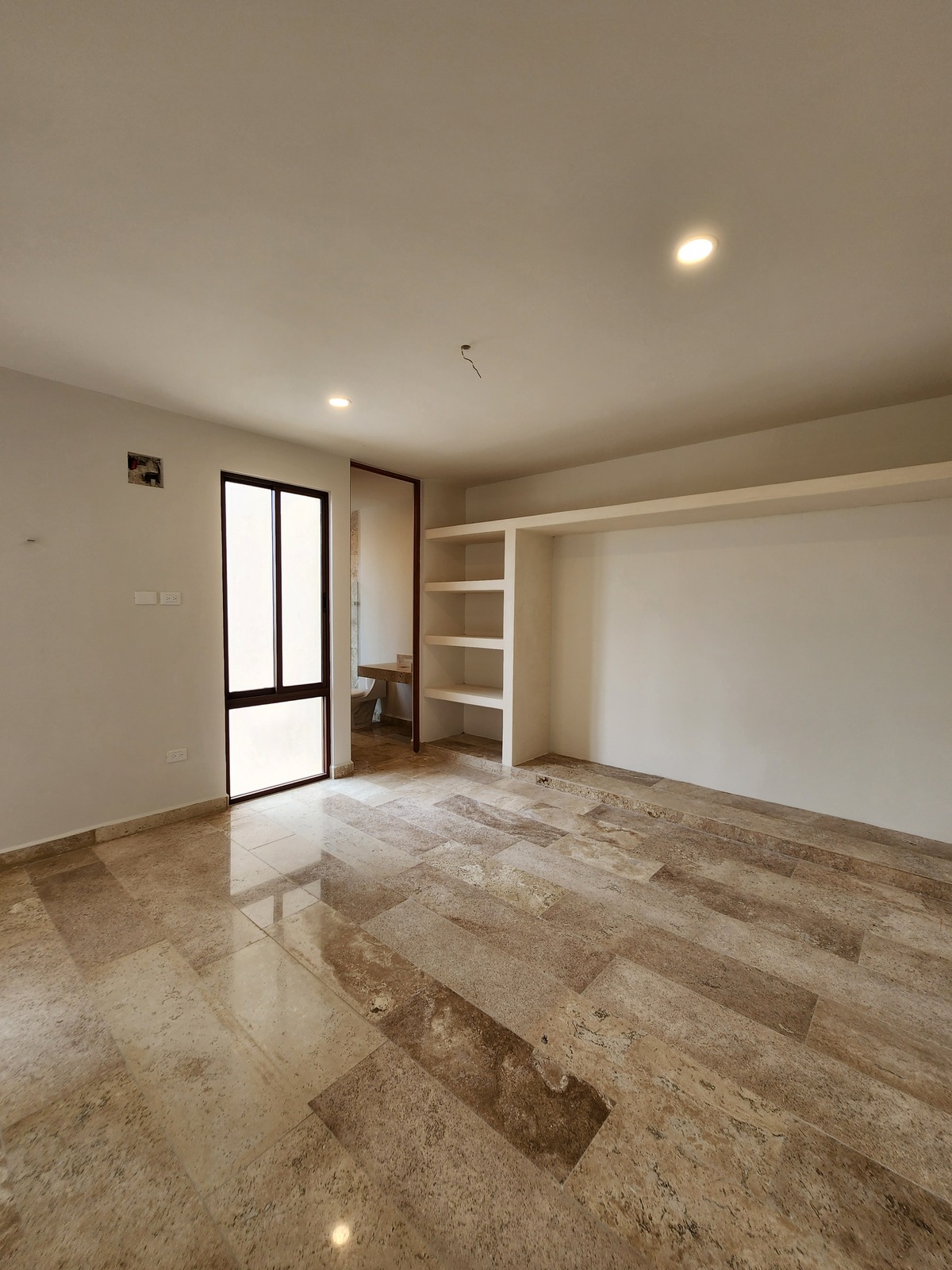 Recámara con área para closet vestidor, baño y terraza