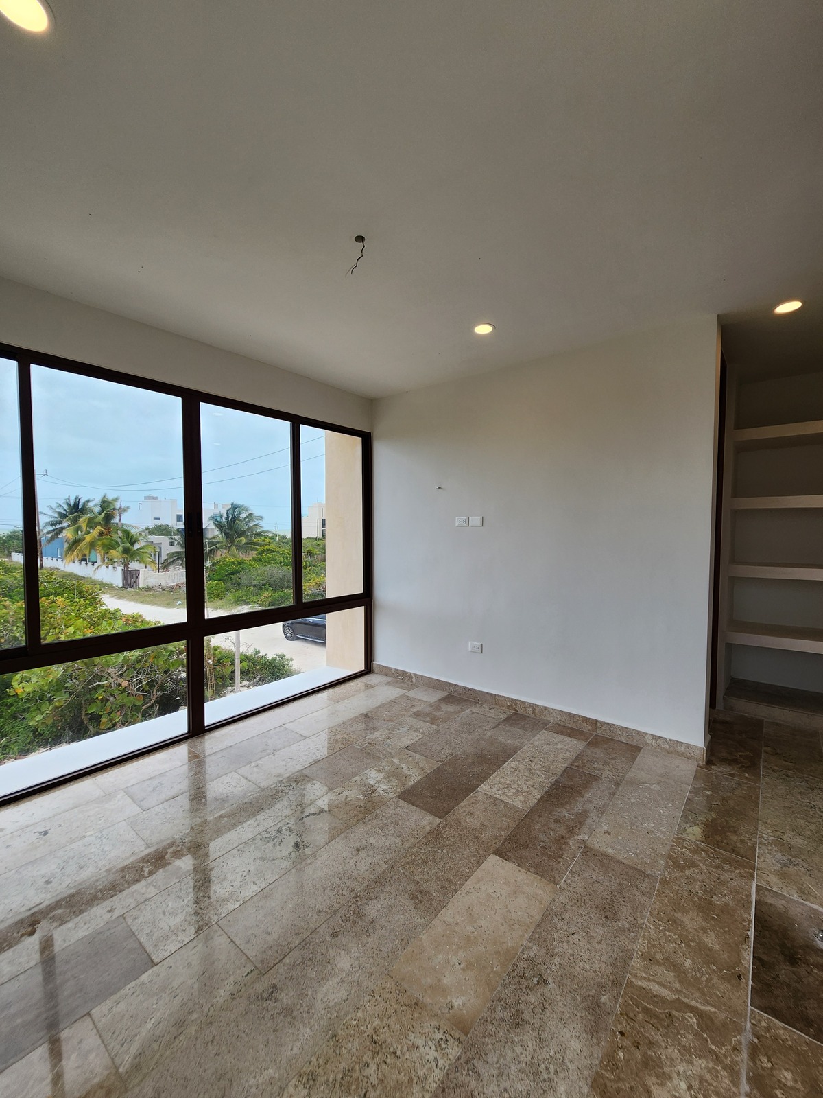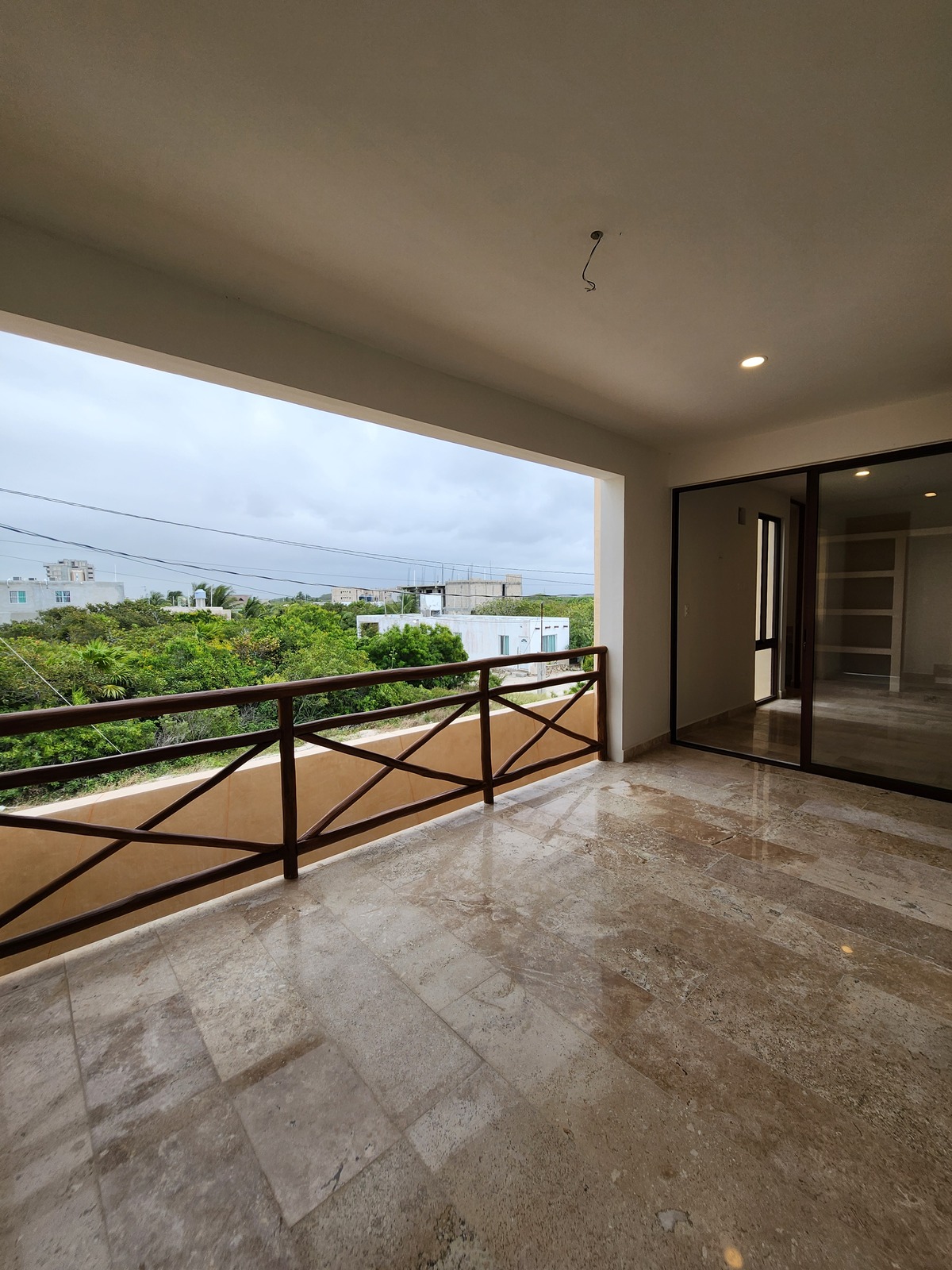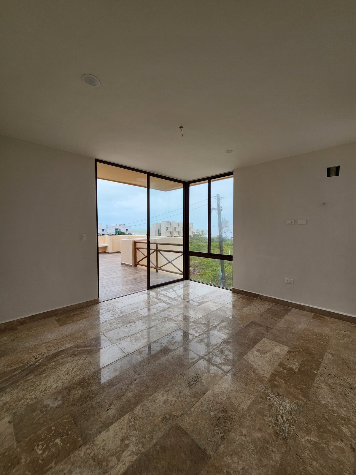 Recámara con área para closet vestidor, baño y terraza