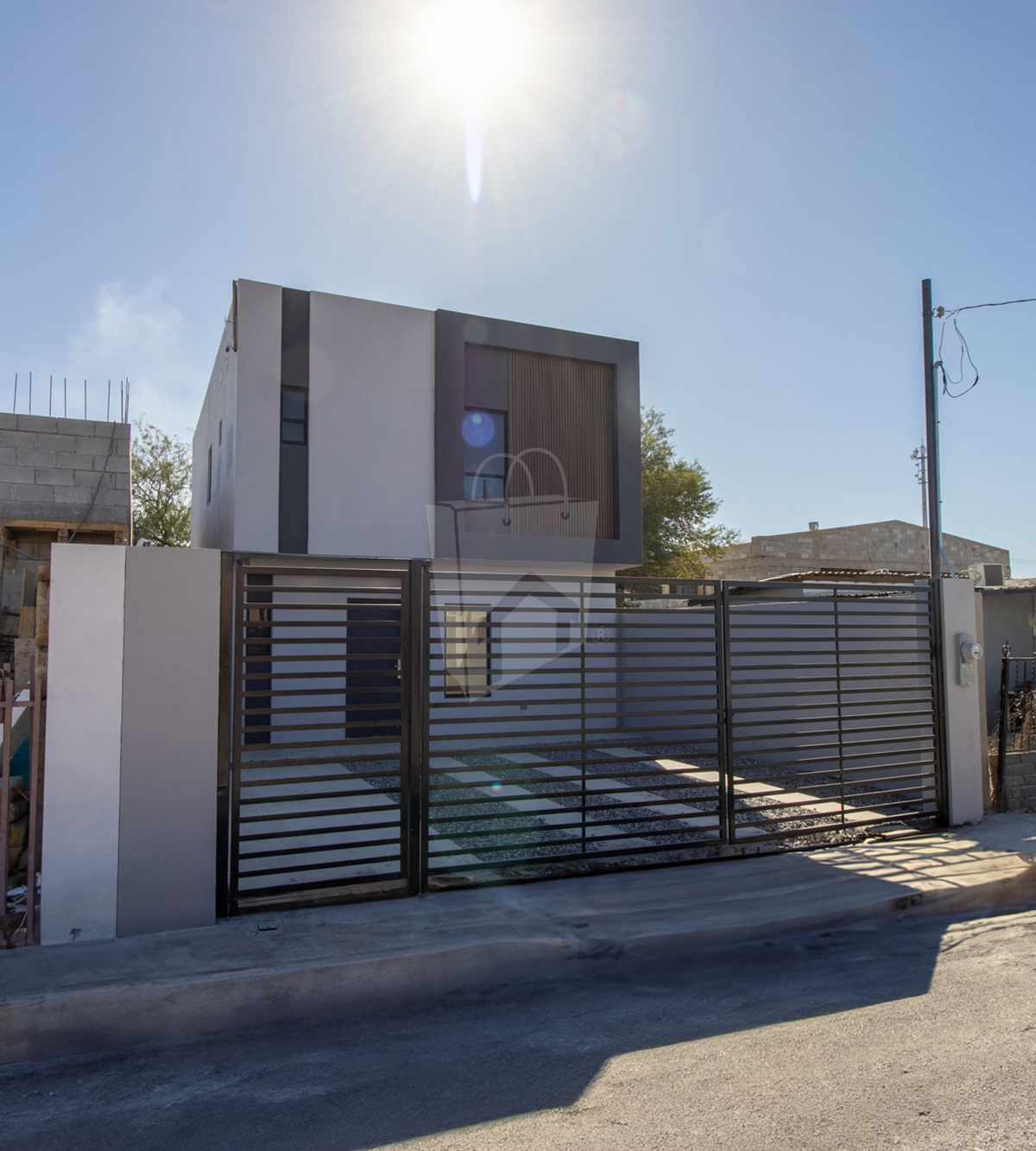 • Cerco de herrería en parte frontal, con puertas abatibles para dos autos y