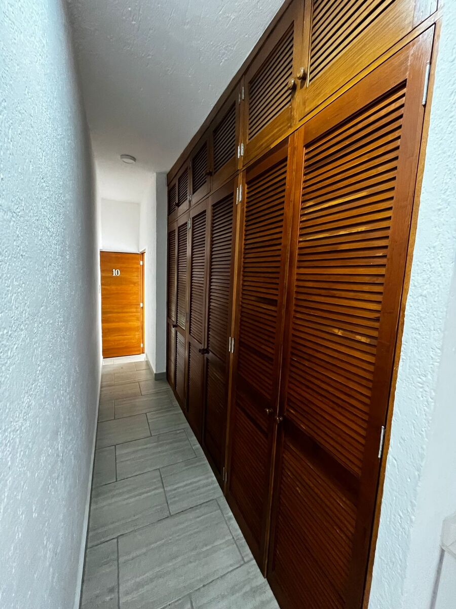 Sala, comedor, cocina, terraza, baño, estacionamiento para un auto. área de lavado común.