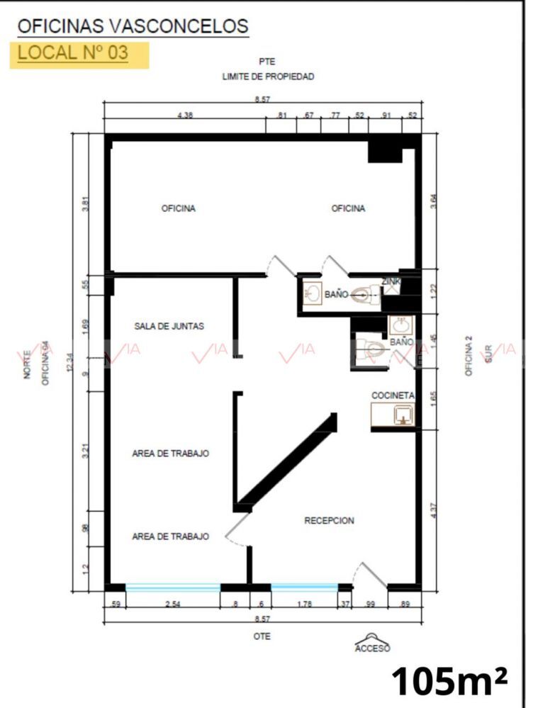 Con una superficie de 105m2 y 3 cajones de estacionamiento. Además, ofrece seguridad 24/7, jardín, elevador, clima central, luz y agua, garantizando un espacio funcional y agradable para llevar a cabo actividades laborales.