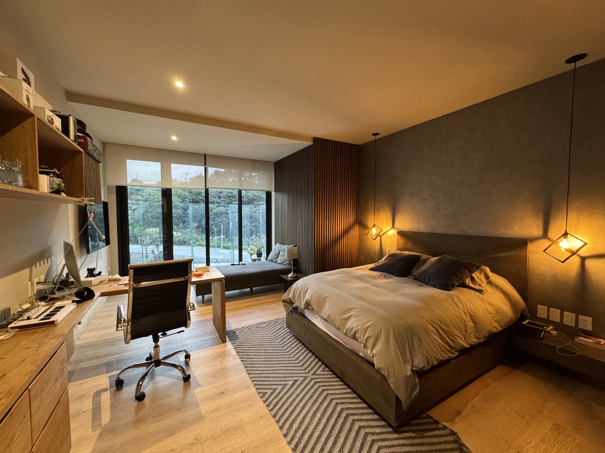 Son tres amplias recámaras cada una con su baño y vestidor, sala, comedor, family, estudio, cocina con antecomedor y áreas de servicio.