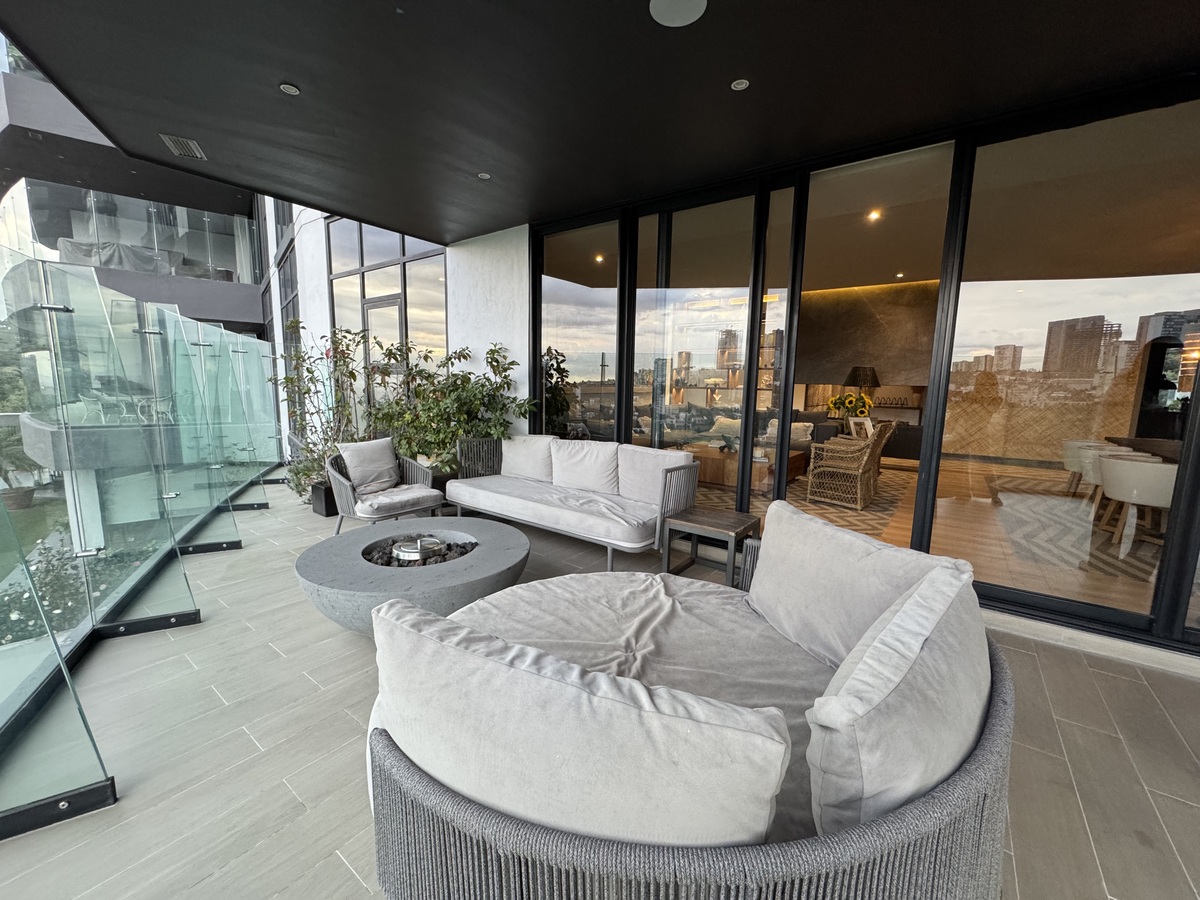 Espectacular departamento en venta en Residence, Bosque Real. Cuenta con acabados de lujo y un diseño de interiorista único. Tiene una amplia terraza con vista al campo de golf principal.