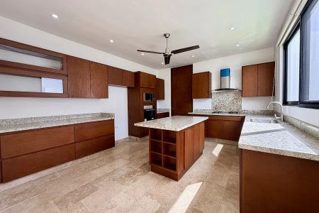 -Cocina vestida con gavetas con estufa y campana