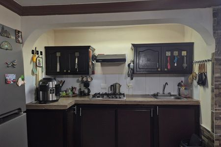 Garagem coberta para um veículo com portão elétrico, área de entrada ou terraço interior, sala, sala de jantar, cozinha integrada com balcão de café da manhã e armário de bar equipada com fogão e coifa, quarto com closet e mini-split, banheiro completo revestido com azulejos e equipado com acessórios de banheiro e box, ampla área de lavanderia coberta com pé direito duplo e amplo espaço ideal para despensa ou depósito.
