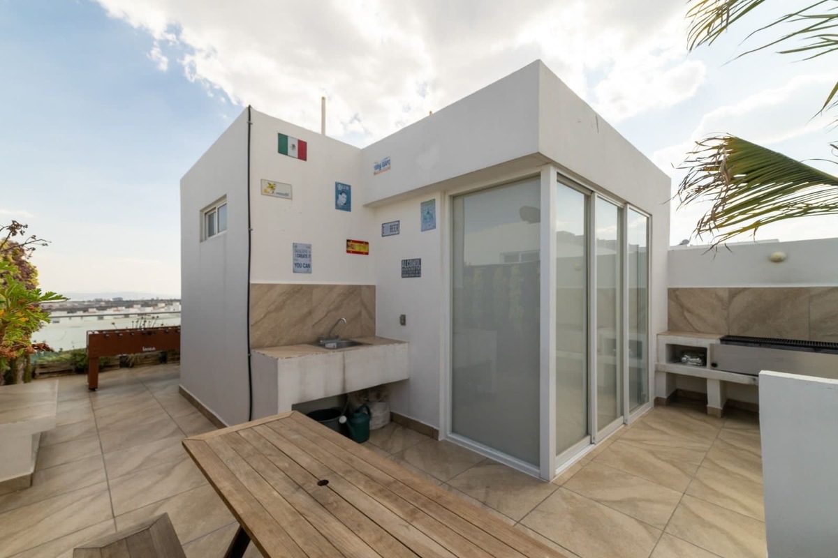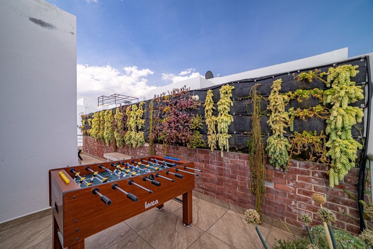 -Amplia terraza con asador y tarja. Roof garden con muro verde vivo y sistema de riego automático.