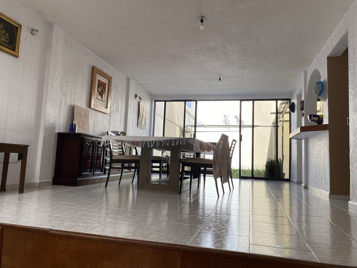Segundo nivel. Comedor amplio, cocina integral abierta con barra y alacena amplia. Cuarto de servicio con área de lavado y baño completo.