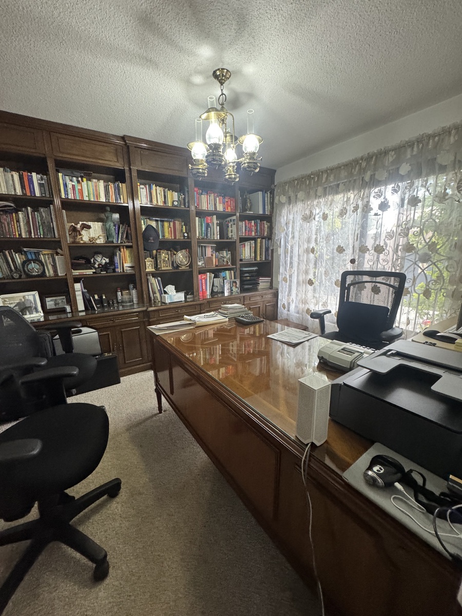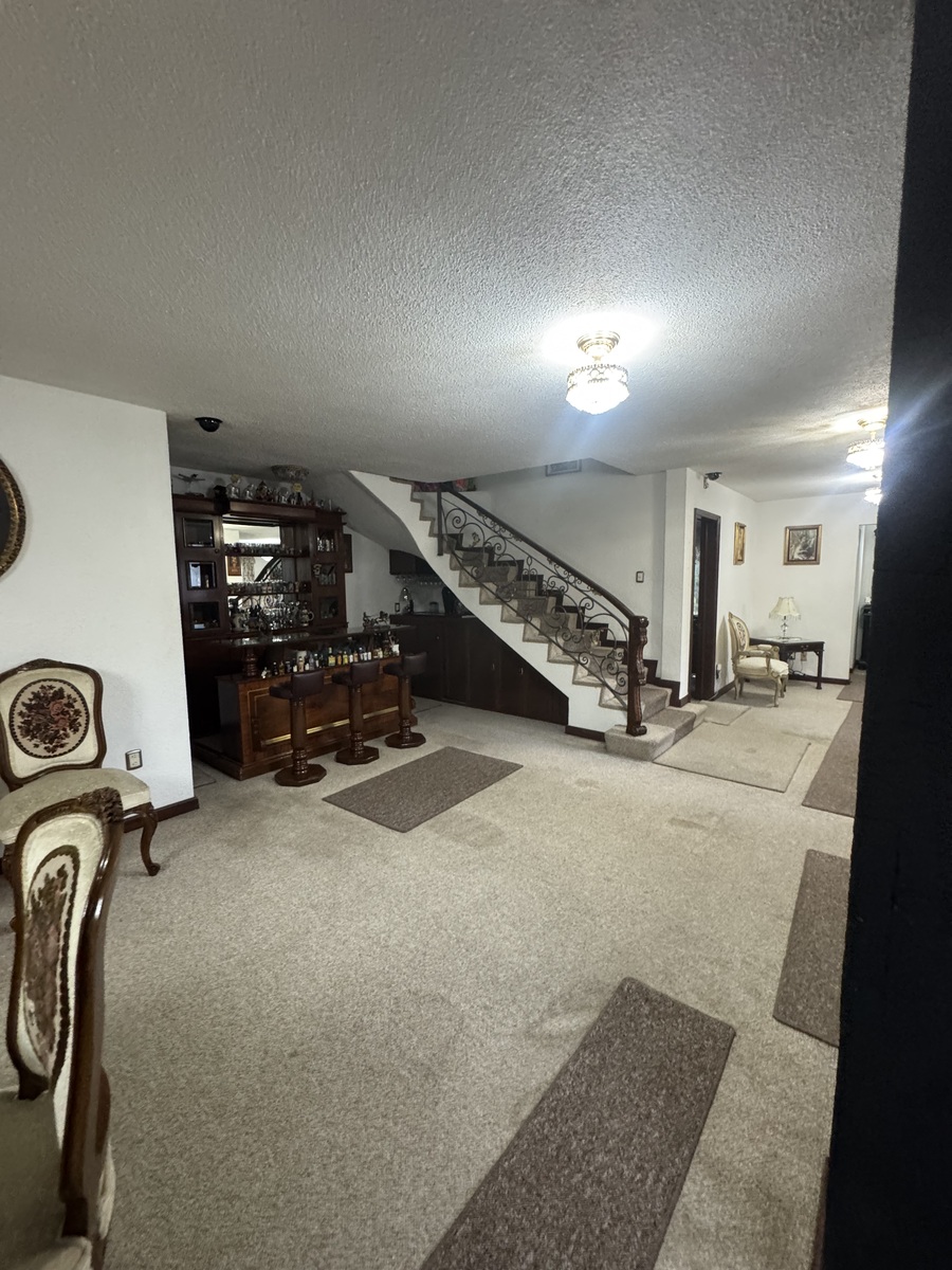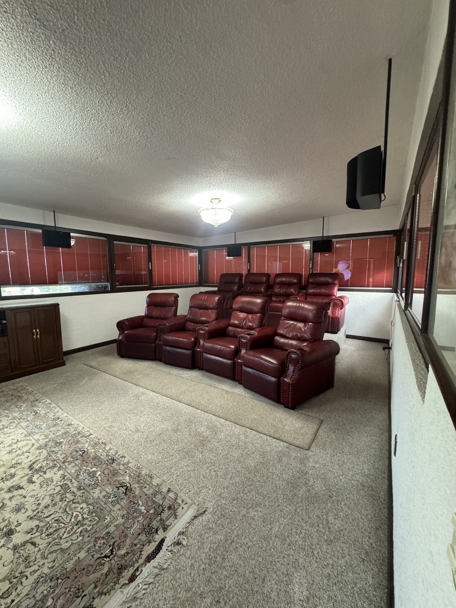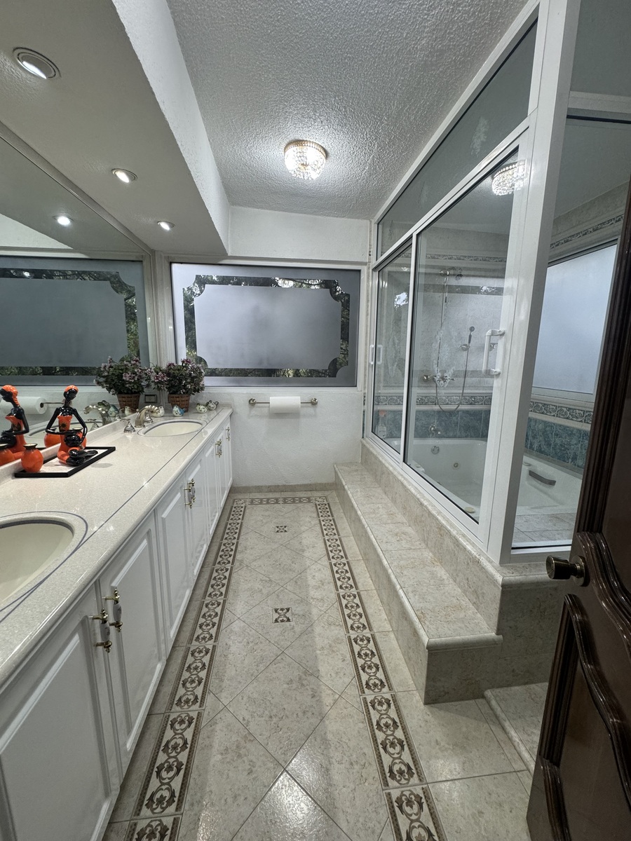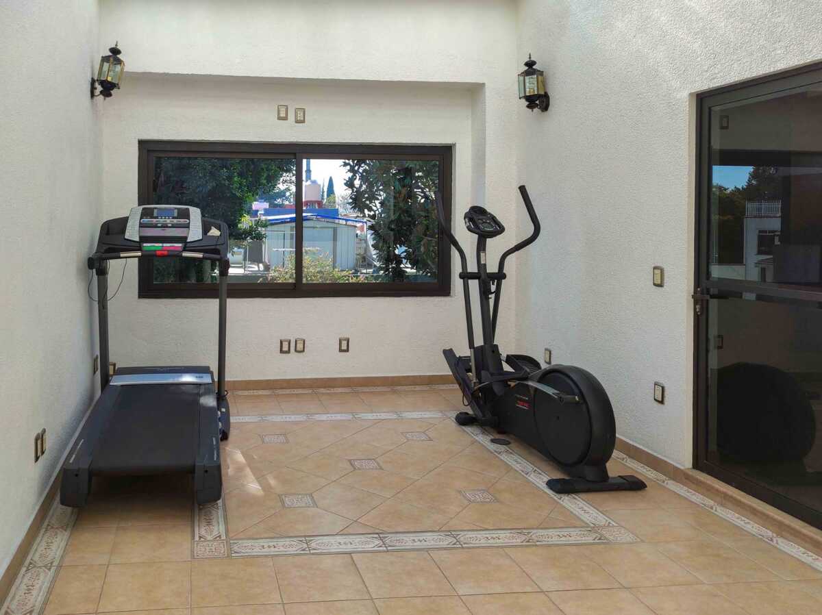 . Área para Gimnasio. *. Sala de cine profesional, con ventanas acústicas, y butacas de piel automatizadas y equipo de audio de importación. *. Escalera retráctil para subir a la azotea. *. Los Baños cuentan con canceles de vidrio tipo vitral con emplomado, cubiertas de Corian con diseño propio, clóset interior y amplios espejos. *. Toda la Herrería es Artesanal con figuras bronceadas incluyendo la escalera interior. *. Cocina Integral Equipada con cubierta de Corian *. Cuarto de lavado con lavadora y secadora medio baño de servicio. *. 2 pequeñas bodegas de usos múltiples.