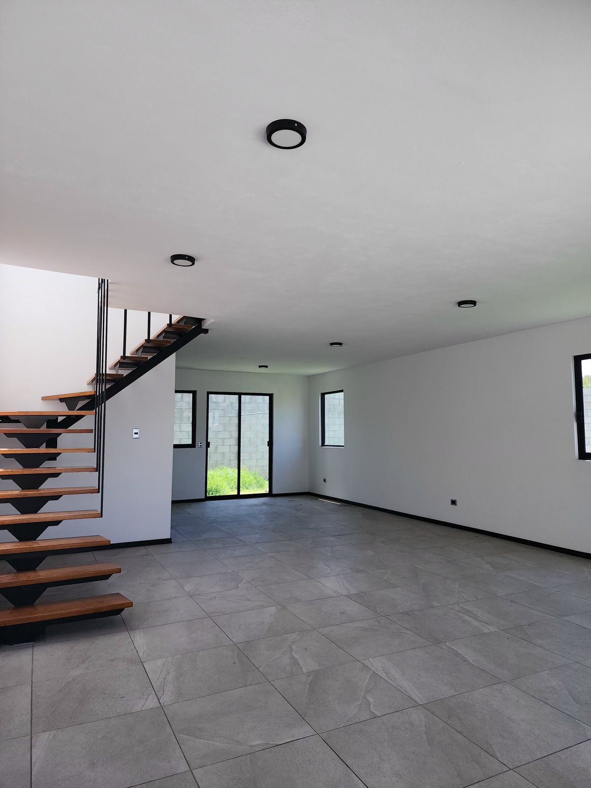 la entrada principal nos conduce a la sala, con vista a la escalera que conduce al 2do. nivel.