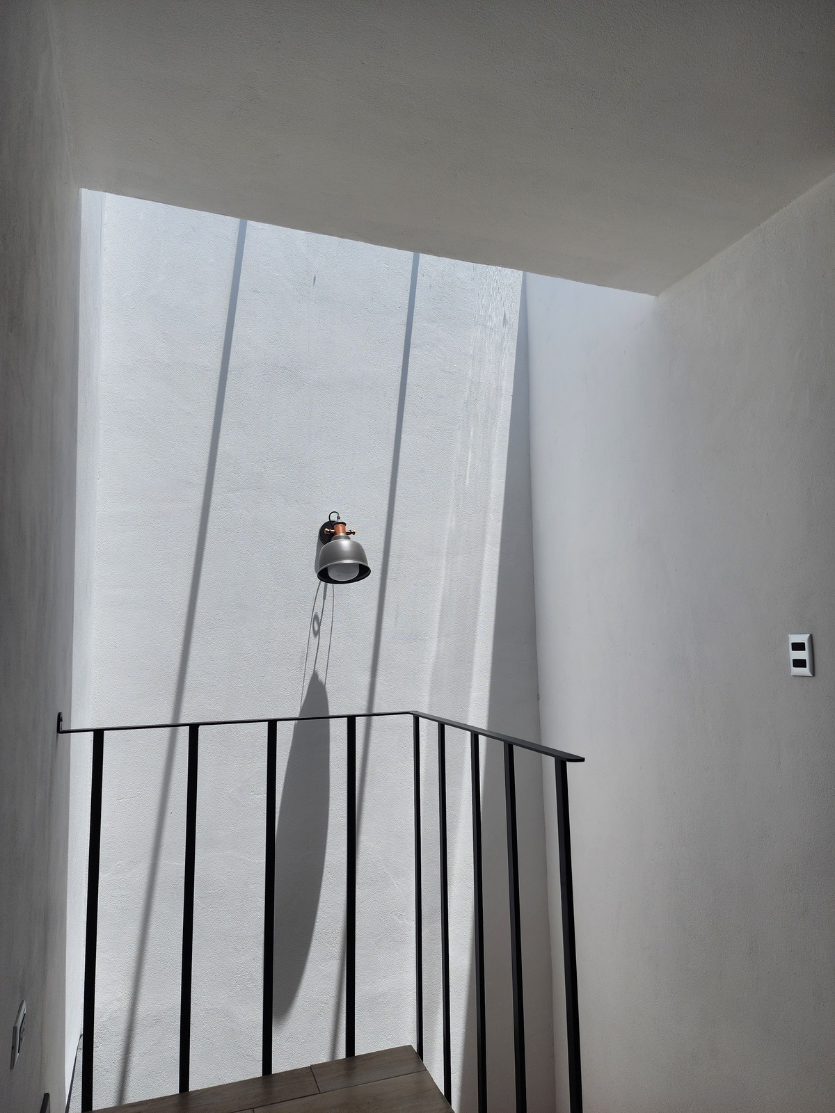A entrada principal nos leva à sala, com vista para a escada que leva ao 2º nível.