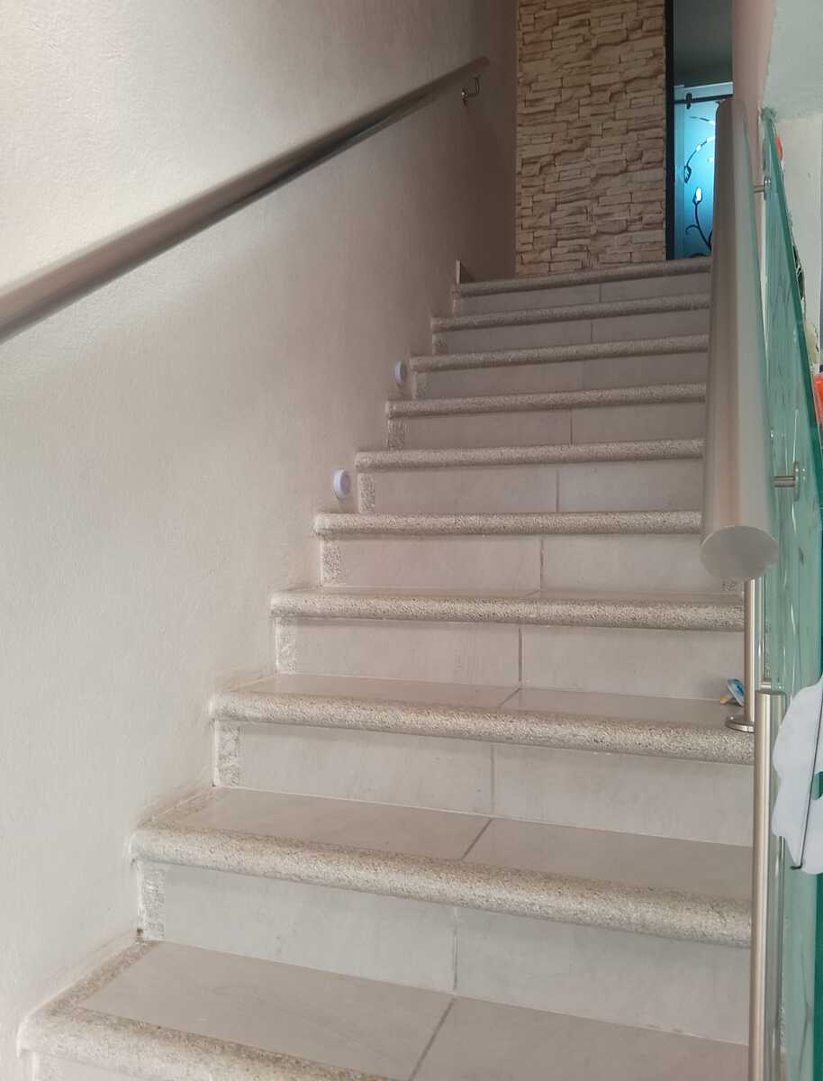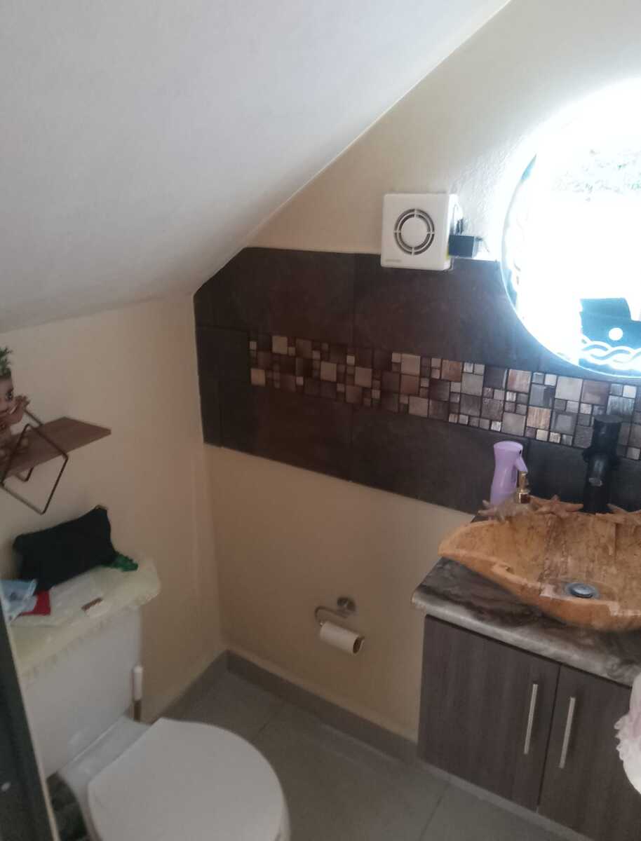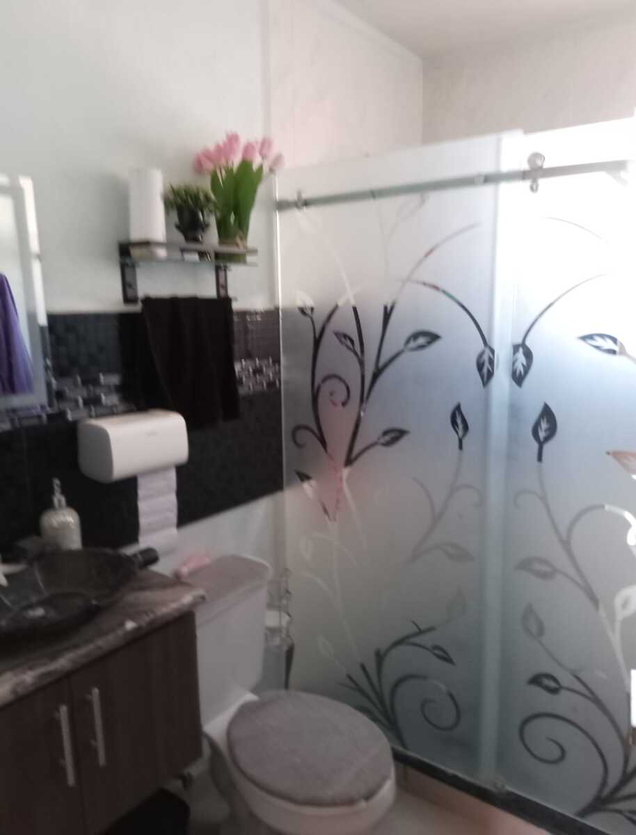 Un baño completo con puerta de cristal templado, medio baño en P.B.