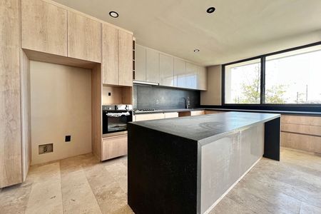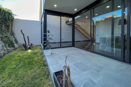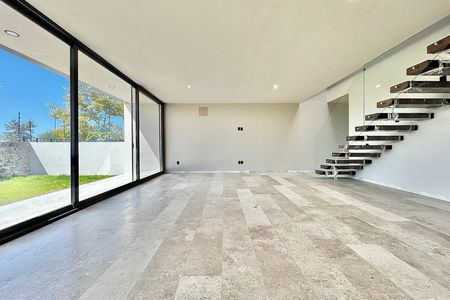 3 cajones de estacionamiento / 2 entradas la principal y entrada lateral de servicio que conecta al área de lavado y cuarto de servicio / recibidor lateral a la entrada / baño social / al fondo amplia sala en doble altura / comedor para 12 personas / Cocina abierta con isla, amplia alacena y múltiples espacios para guardar forrada en granito / Cuarto de lavado con bodega / Cuarto de servicio con baño completo / al fondo un amplio jardín con pérgola y entrada lateral