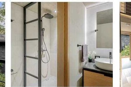 ● Quartos Secundários: A casa secundária contém quatro quartos funcionais com mezaninos de pé direito duplo e banheiros privativos. Cada quarto acomoda três camas (duas no nível inferior e uma no nível superior), hospedando confortavelmente vários hóspedes.