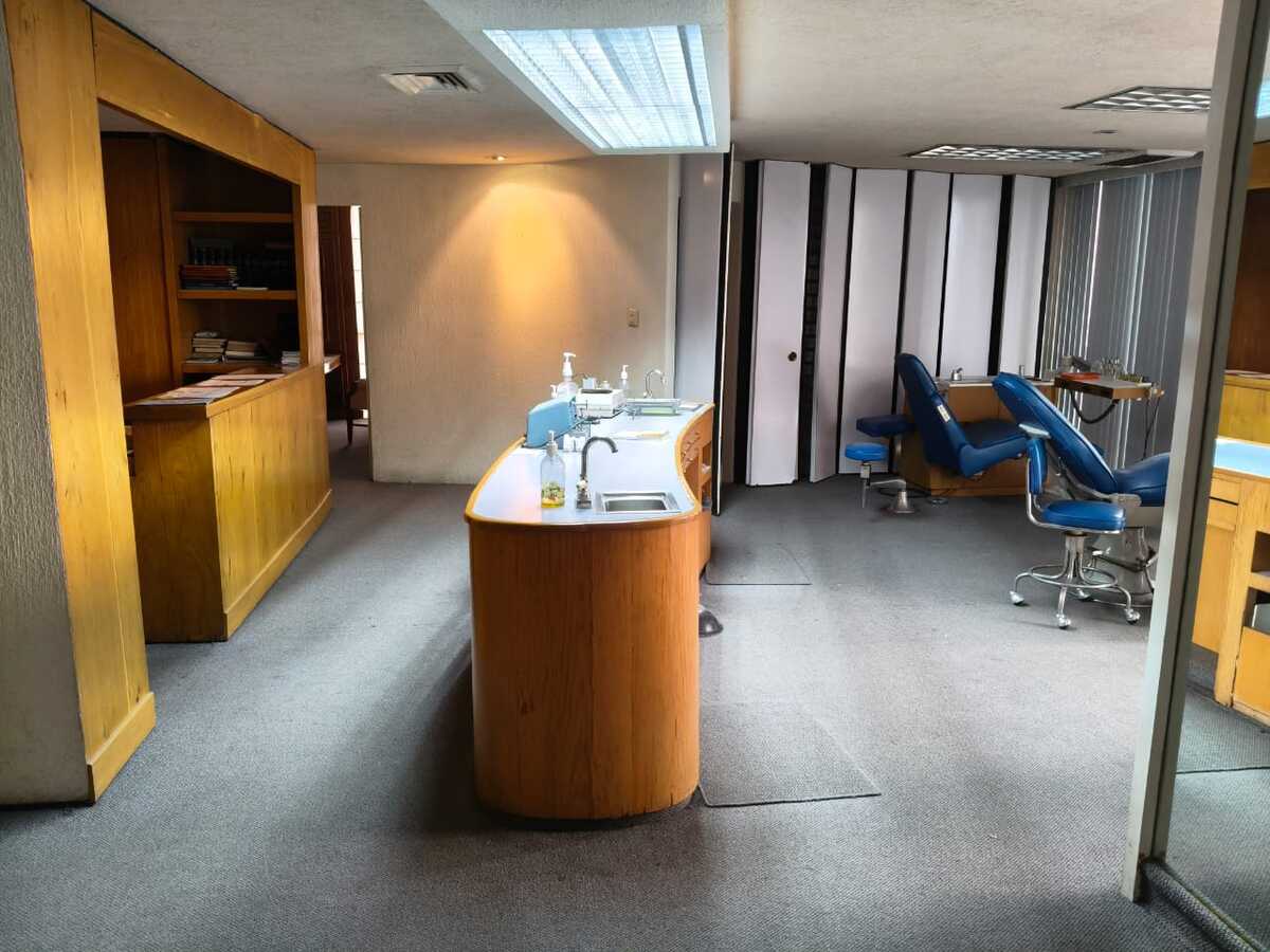 O consultório está localizado no 11º andar de um edifício de 12 andares, oferecendo uma magnífica vista panorâmica de Lomas de Chapultepec. Possui 200 metros quadrados distribuídos entre 4 cubículos privados, 2 banheiros privados, 2 banheiros no andar para áreas comuns e um espaço aberto projetado especificamente para atividades produtivas relacionadas ao setor de saúde. Conta com 1 depósito e o estacionamento é coberto, sendo cobrada uma taxa de $2000,00 mn por cada vaga de estacionamento necessária.
