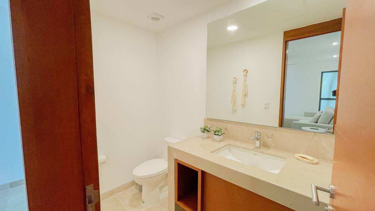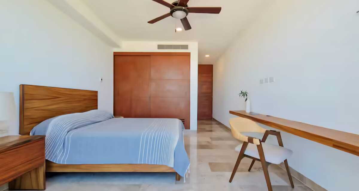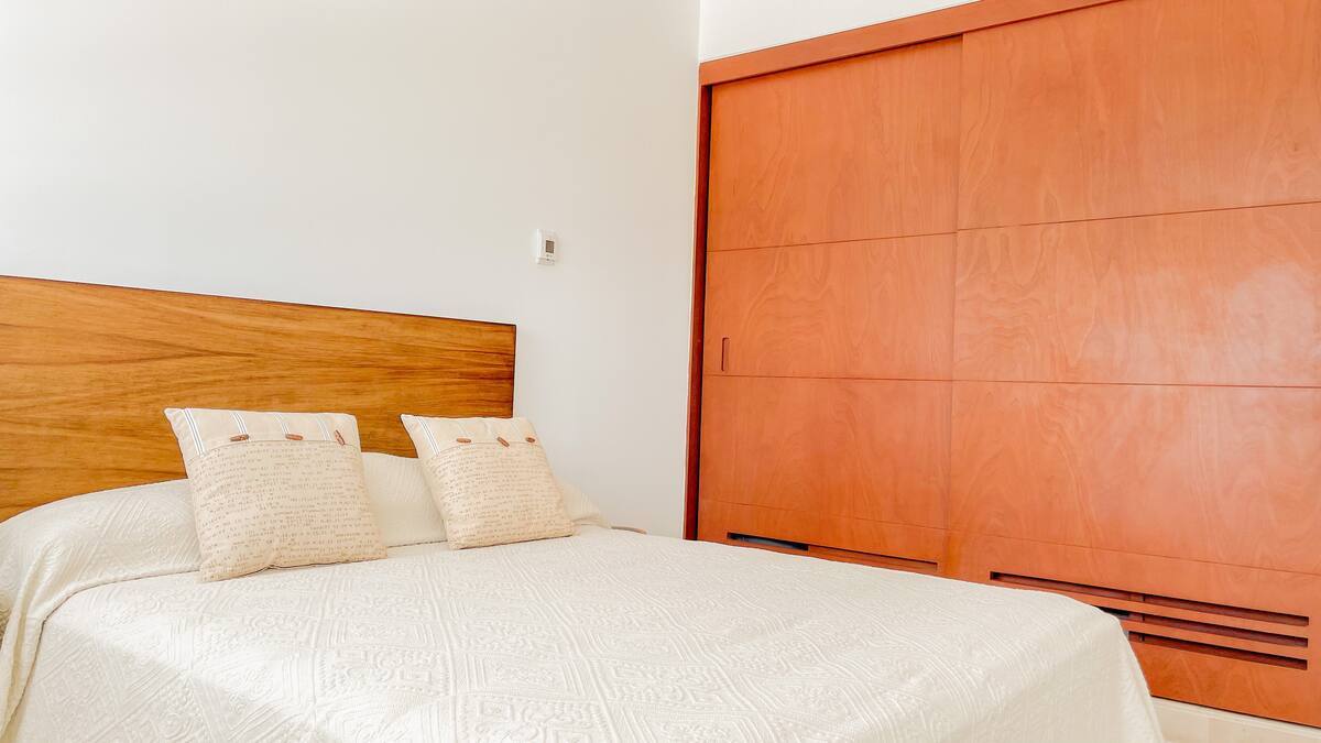 *Recámara secundaria con cama queen size, área de trabajo, baño completo y acceso directo a la terraza.