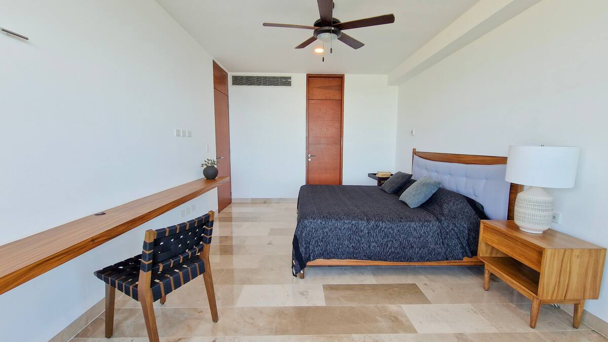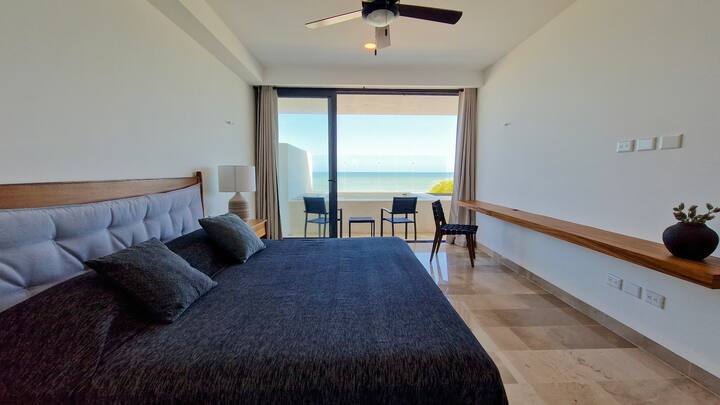 *Recámara principal con cama king size, baño completo con doble lavabo, clóset vestidor y espectaculares vistas al mar.