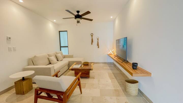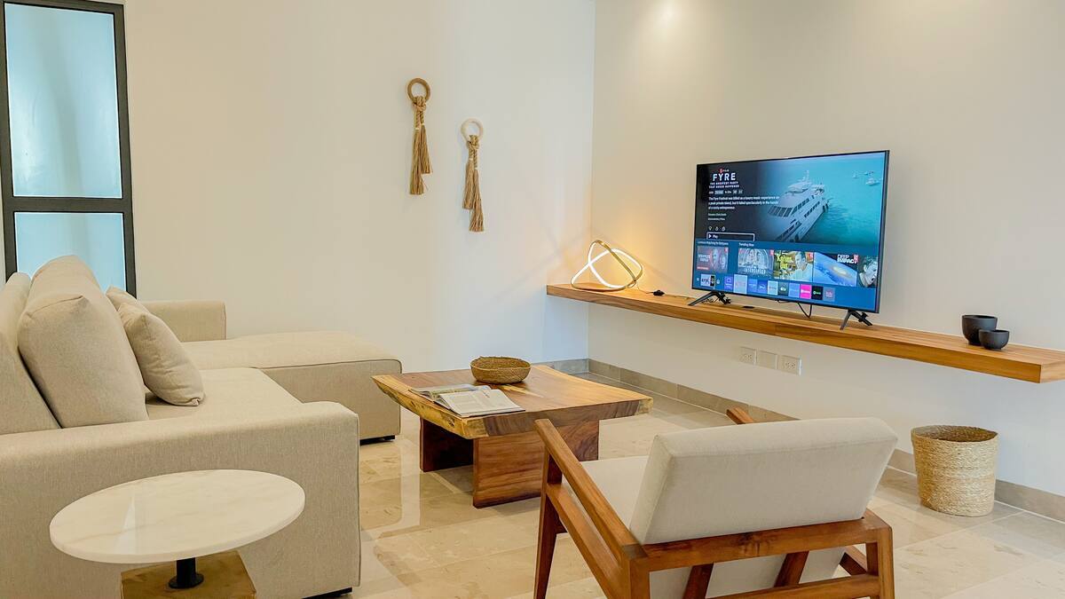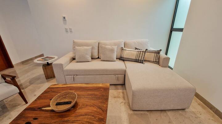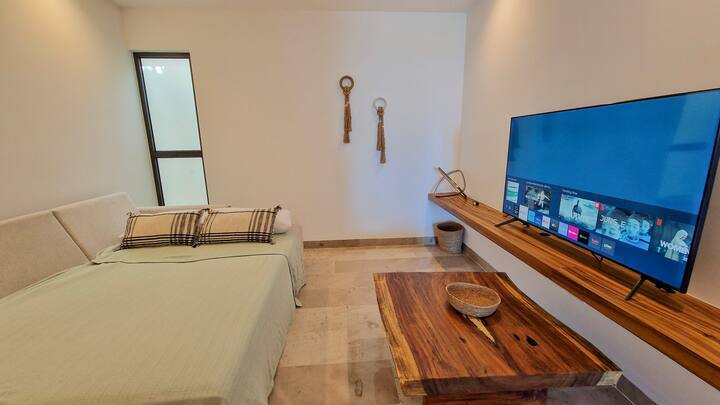 *Espacio privado con sala con sofá cama queen y smart TV *Cocina integral equipada