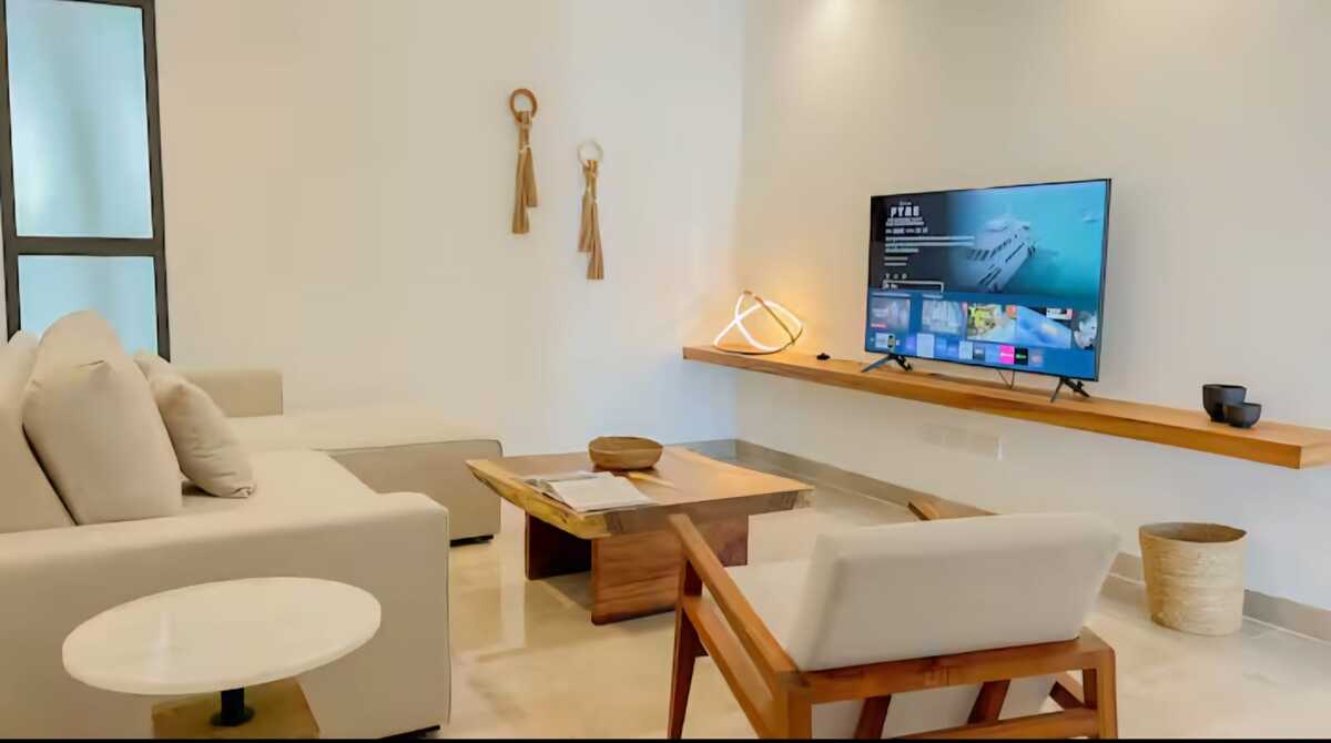 *Área de entretenimiento con smart TV de 55”, sofá-cama queen y baño de visitas.