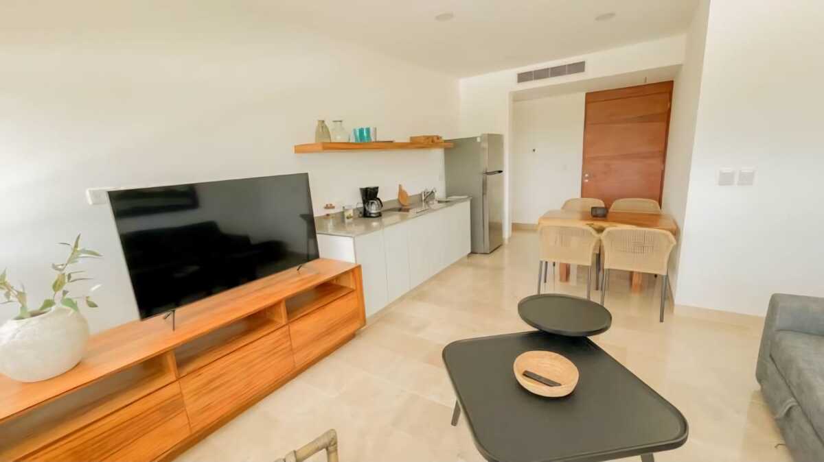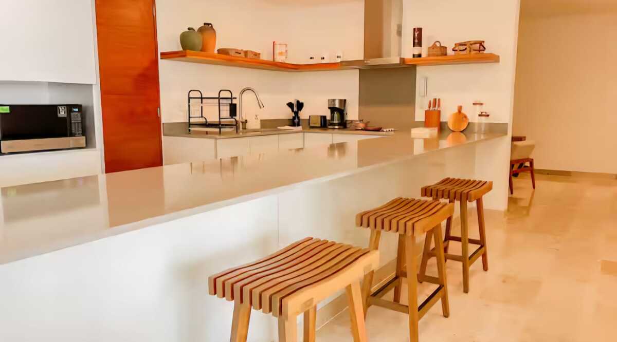 -Áreas comunes con camastros, cocineta tipo isla y estacionamiento para 2 vehículos más visitas.