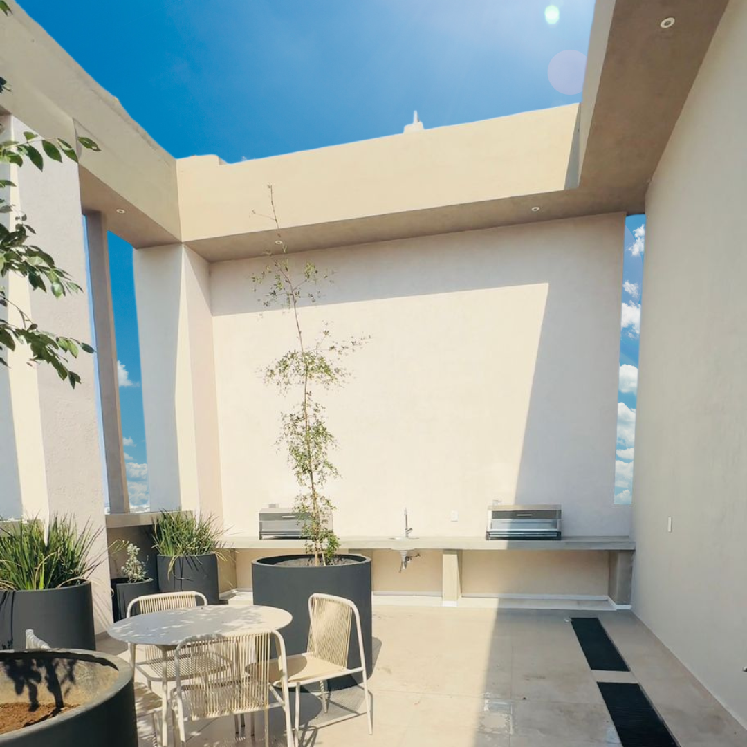 El edifico cuenta con área de coworking y terraza con asador