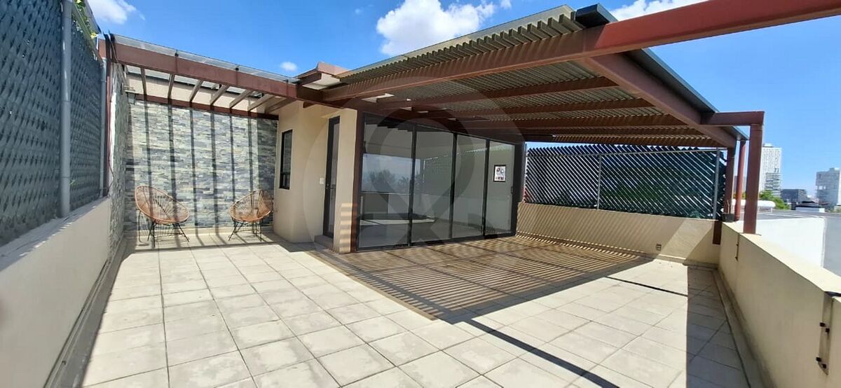 El departamento cuenta con un espectacular roof garden de 75 m² adicionales, con área techada que incluye un cuarto de Tv o estudio, barra con tarja y el resto abierto, ideal para disfrutar de las vistas y el clima.
