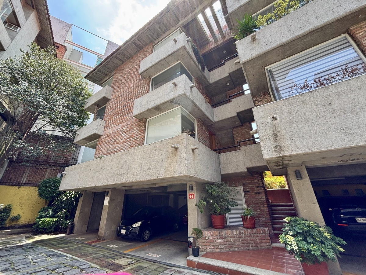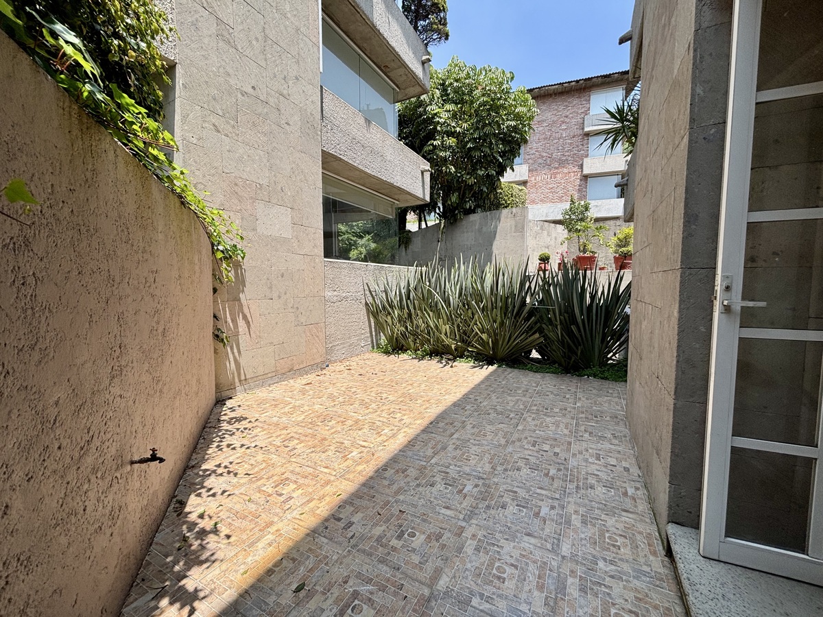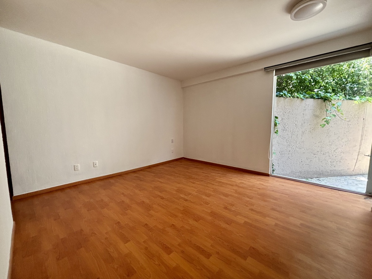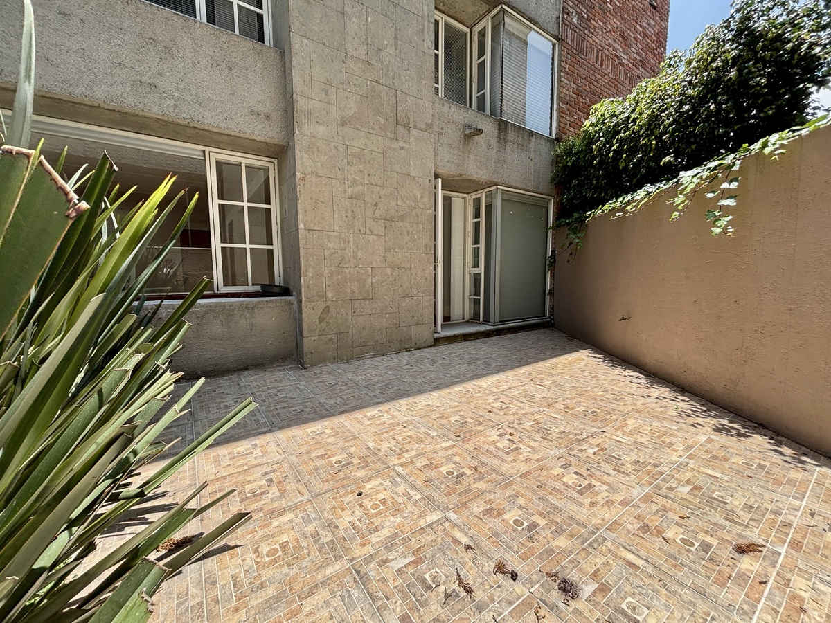 Área de lavanderia, despensa, estacionamento para 2 carros, vigilância 24 horas. O desenvolvimento tem 6 edifícios com apenas 6 apartamentos cada um. 115m habitáveis + 25m de jardim + 5m de despensa = 145m totais.Depto totalmente remodelado, ubicado en primer piso, terraza de 25 m2, amplia estancia, sala comedor, cocina integral con barras de granito, 2 recamaras, la principal con baño integrado, las otra comparte baño con el área social, el depto tiene pisos de madera, mármol y canceles de vidrio templado.