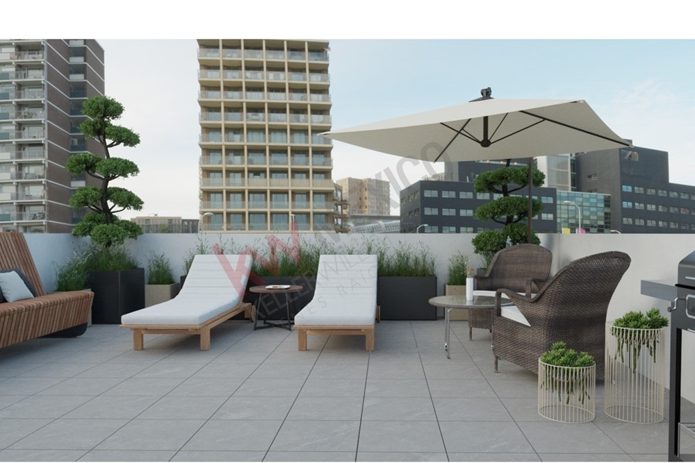 Estos departamentos te ofrecen una distribución acogedora, acabados cálidos y luz natural en cada rincón, creando un ambiente íntimo y armonioso. La cocina equipada invitará a compartir momento especiales, mientras que el roof garden privado se convertirá en tu refugio personal: ideal para cenas al atardecer, tardes de lectura o simplemente contemplar la ciudad en silencio.