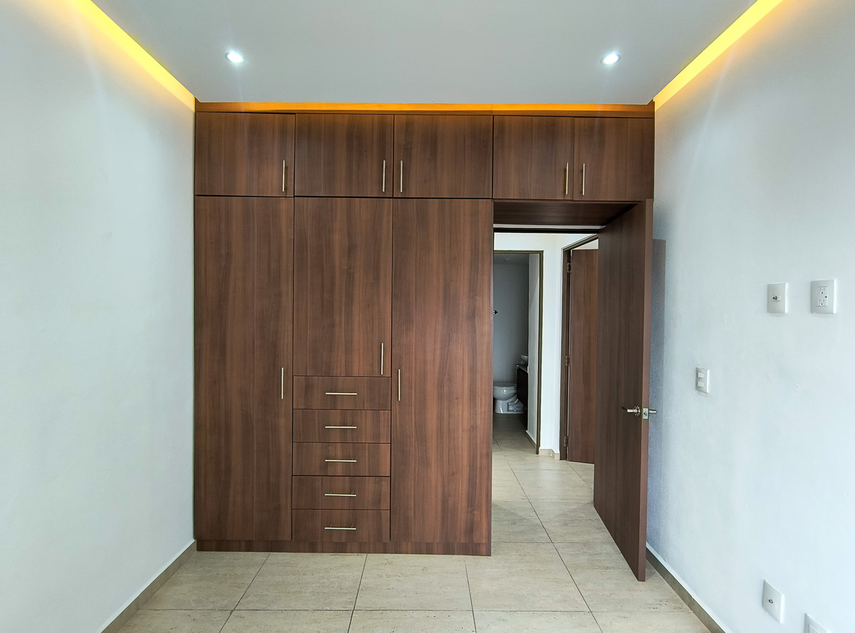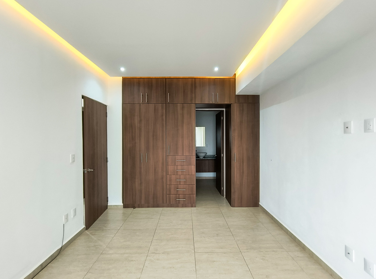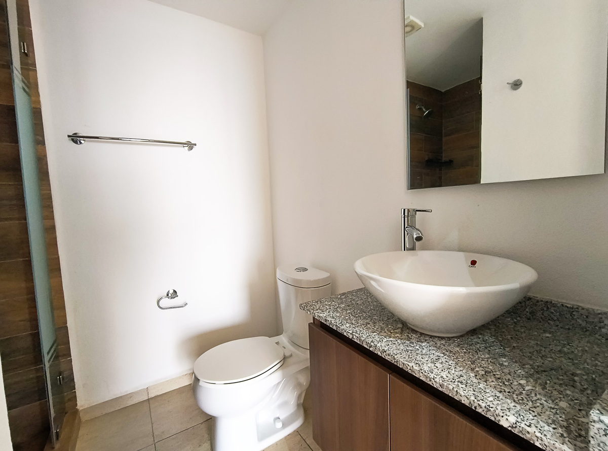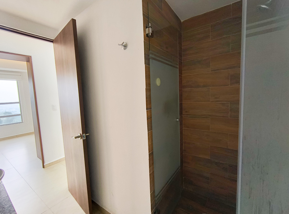 2 recámaras, la principal con baño completo y cancelería de vidrio templado.