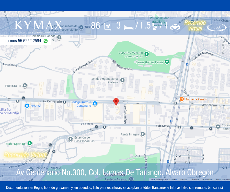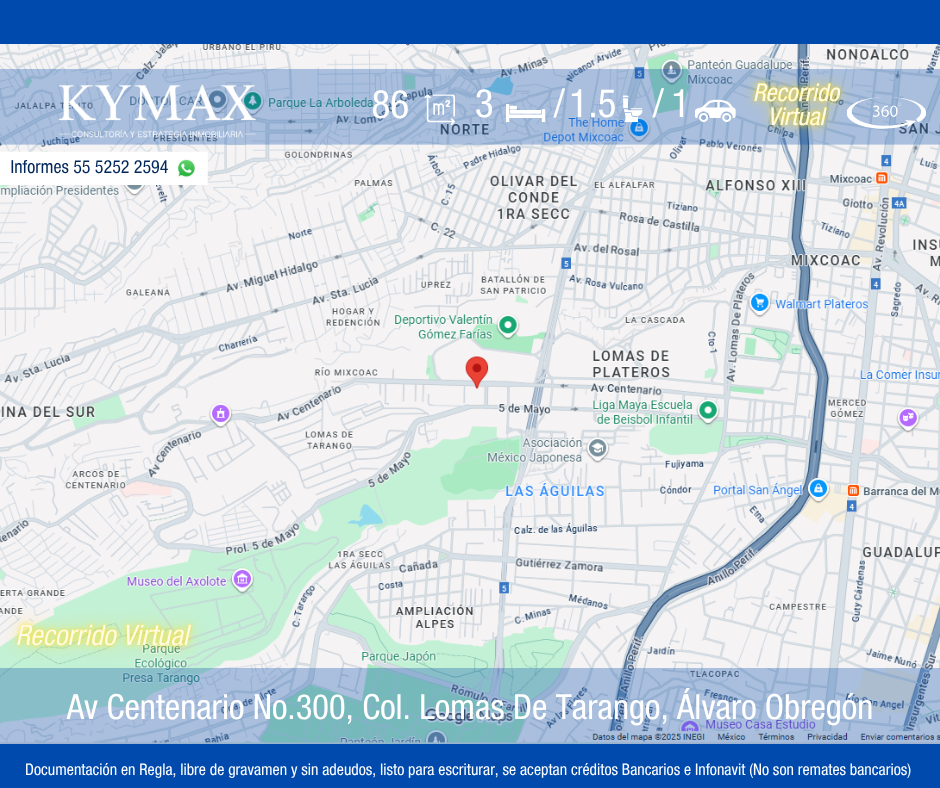 Cercano a Plaza Centenario, Plaza Las Águilas, Plaza Tiziano 189 Col. Alfonso XIII, Oxxo Milpa Alta, Parque "El Ochito", Parque de la Unidad Popular Emiliano Zapata, Parque Unidad Batallon de San Patricio, Tiendas Locales, y accesible a transporte público de autobús y taxi.